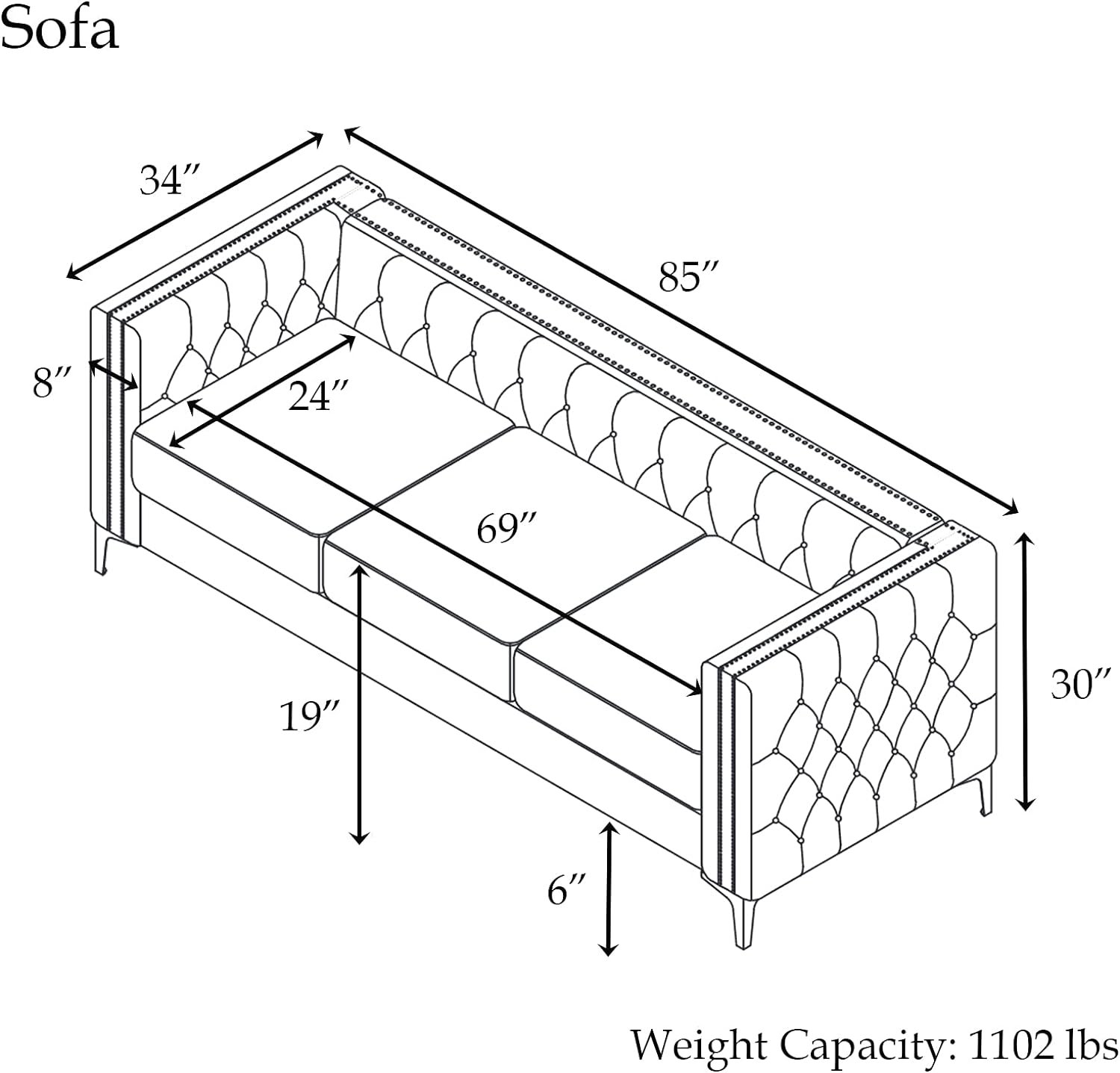 Morden Fort 3-Piece Velvet Sofa Set – Grey Elegance