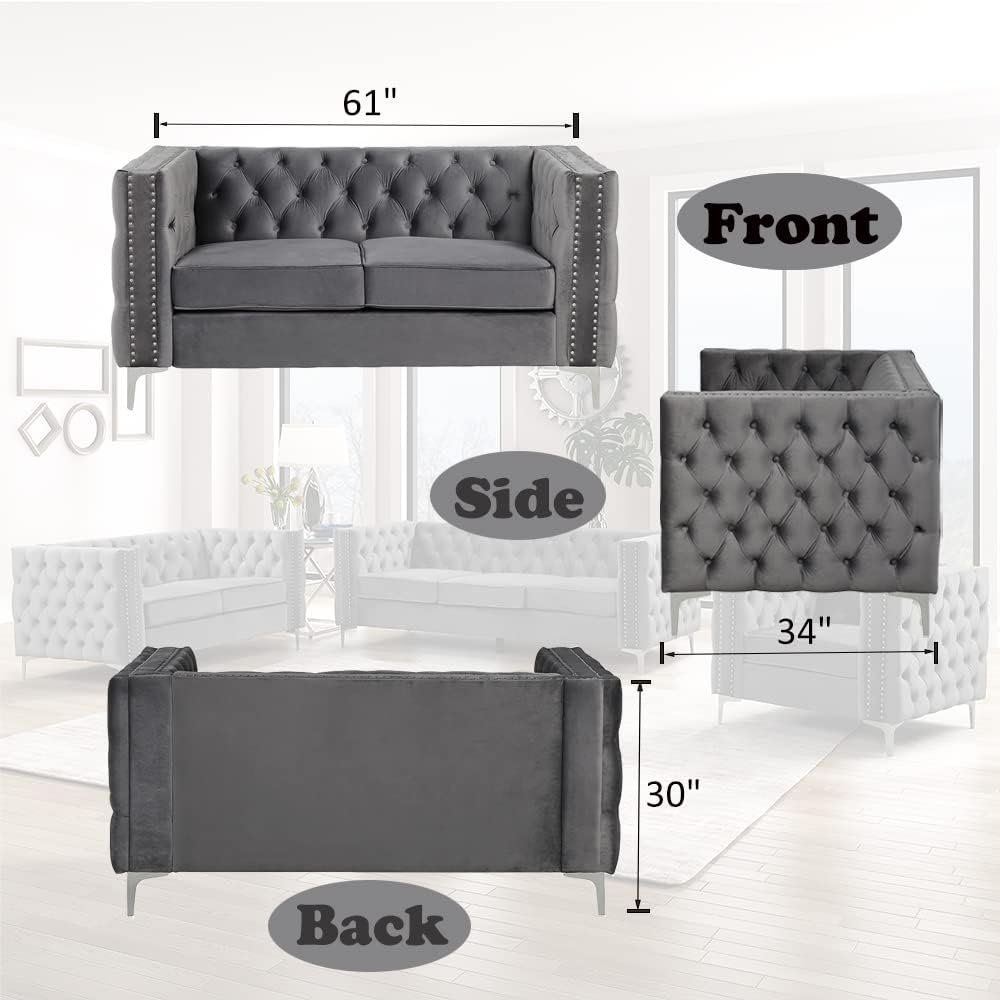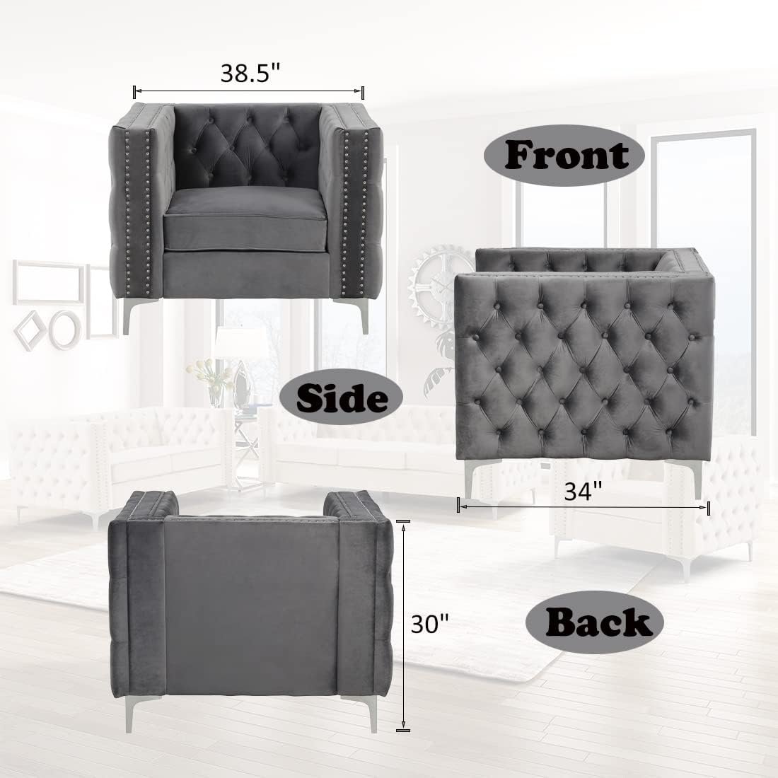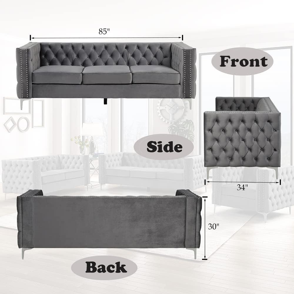 27 reviews for Morden Fort 3-Piece Velvet Sofa Set – Grey Elegance