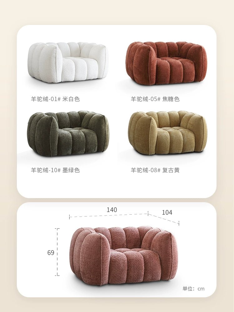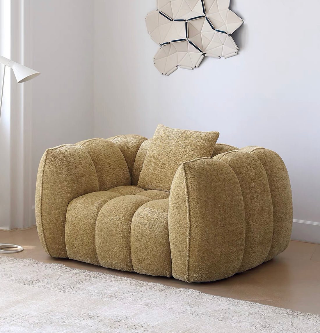 - Unique Design: Admire the unique pumpkin-inspired shape that sets this sofa apart, offering both visual interest and unparalleled comfort.