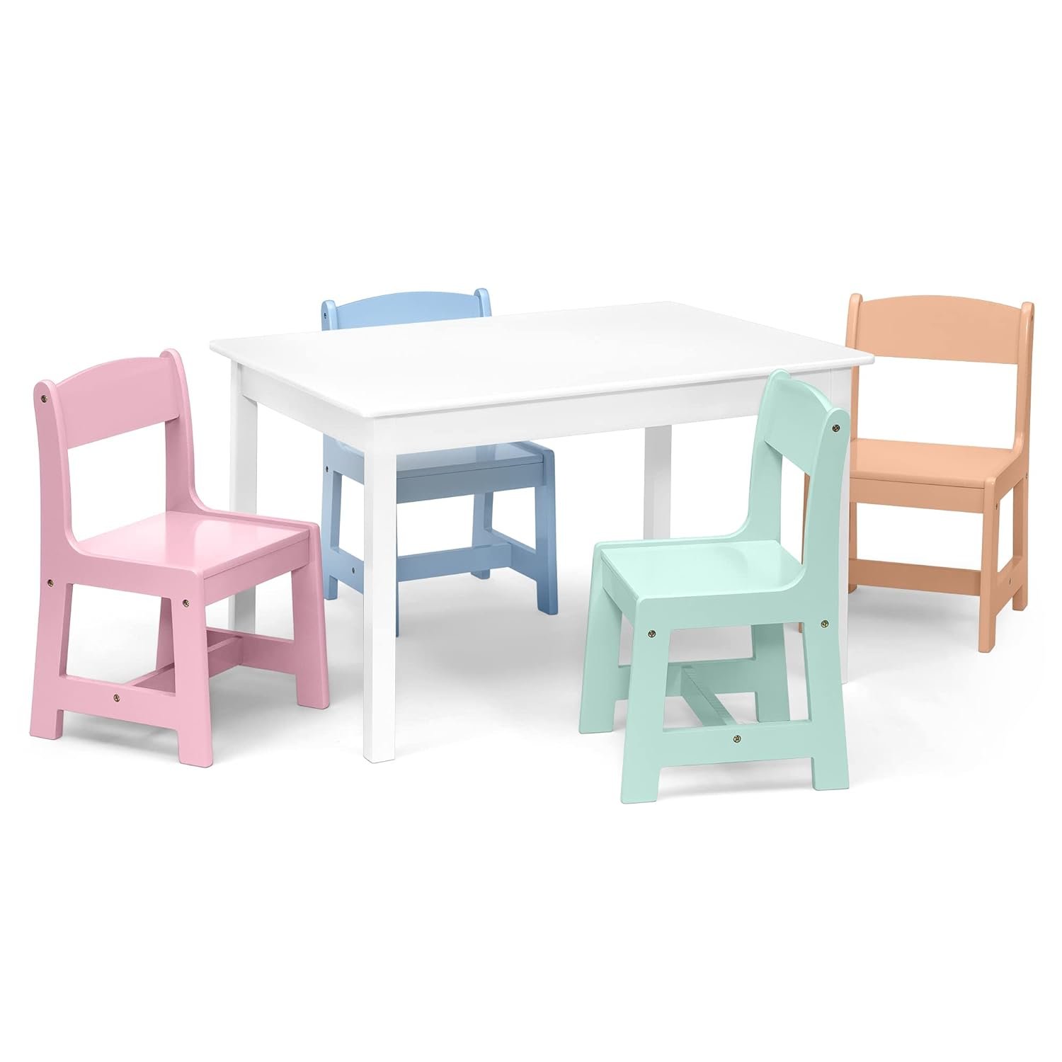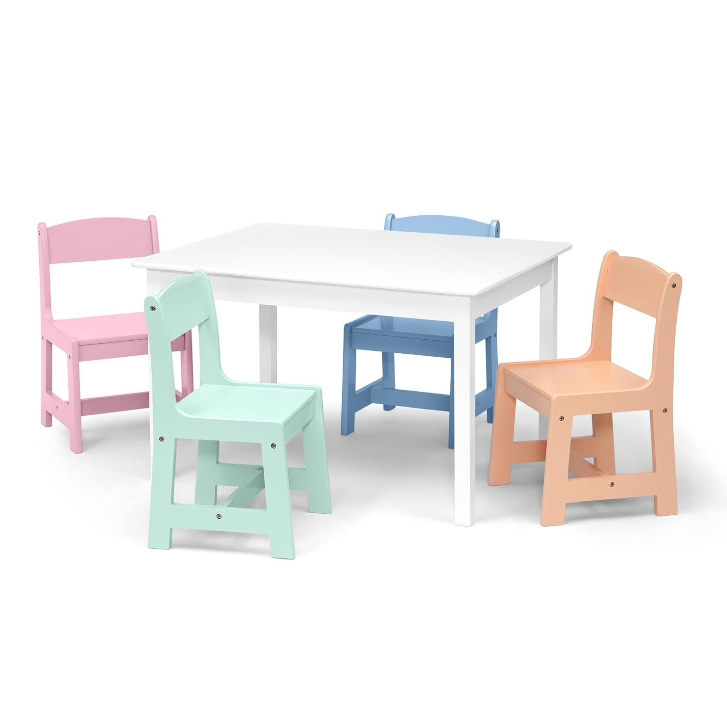 MySize Kids Table & 4 Chairs – Bianca White/Pastel Set