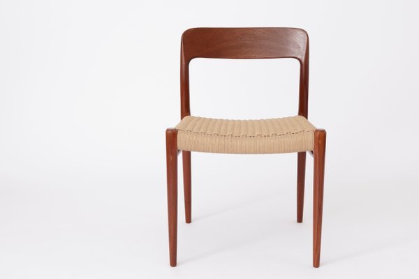 Dimensions 50x49x77.5cm (Width x Deph x Height)This beautiful and very rare arm chair designed by Niels O. Møller was manufactured by J.L.Mollers in Denmark. The model 56 with armrests was one of Niels Moller’s earliest designs and remains one of his most popular. The chair is made out of massive oak wood and comes with a brand new papercord seat. The chair is stamped underneath with the Niels Moller stamp.The wood shows minor traces of wear and tear with small scratches and bumbs and a wonderful patina, nothing that detracts. Overall appearance presents beautifully.