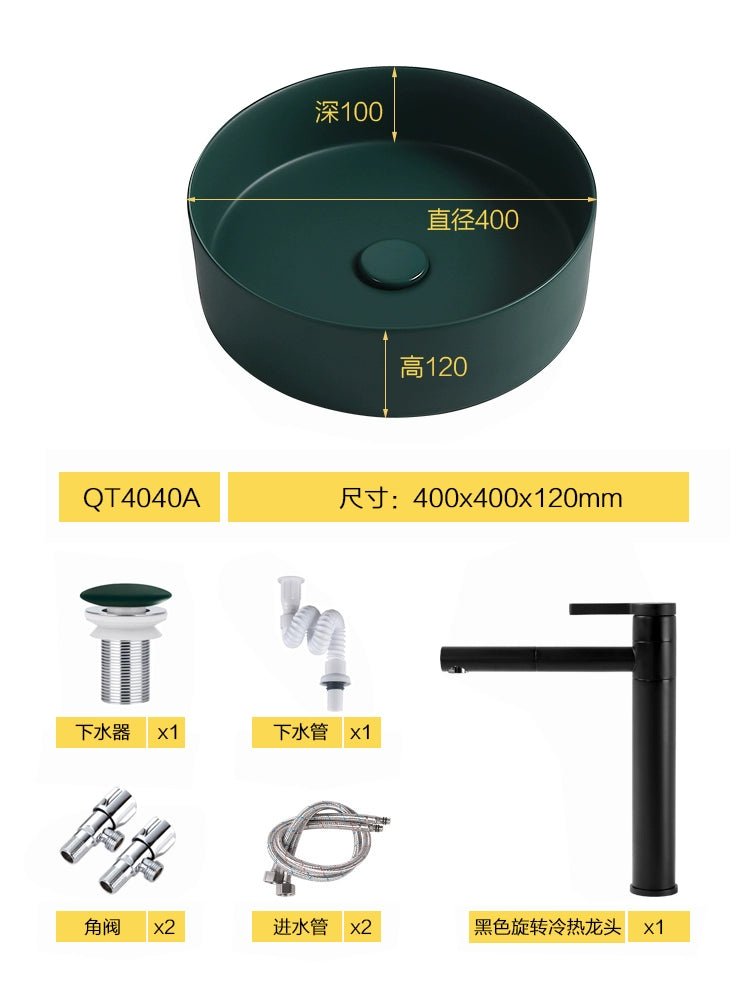 Introducing the Nordic Matte Dark Green Above-Counter Ceramic Basin, a bold and stylish choice for any space. This household wash basin features a striking matte dark green finish that adds a touch of personality and sophistication to your bathroom or balcony. 🌟🛁