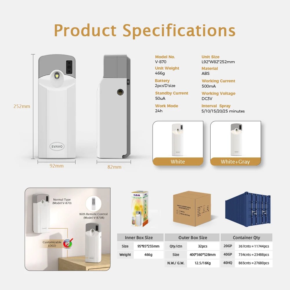 SVAVO Cheap Price Office Bathroom Toilet Automatic Spraying Perfume Dispenser air Freshener Aerosol Dispenser