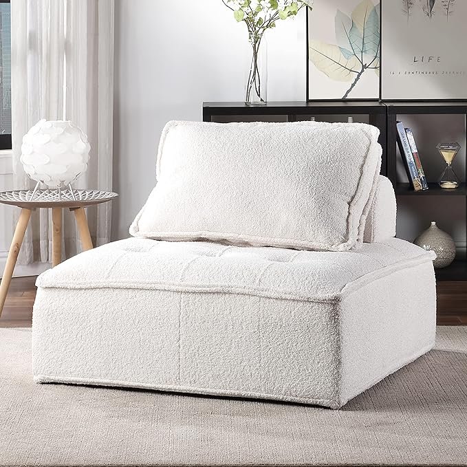This revolutionary modular unit seat design, every detail on the make it the perfect modular sectional seat, independent cube unit accent chair design allows you to combine different shapes according to your needs. Whether when taking a nap on a lazy weekend or relaxing in front of your television with your family in any posture, this unique accent slipper chair will let you relaxing in ultimate comfort at any time of the day. Featuring its flexible modular design that you could combine them in different configurations as life demands or your creative spirits.The unified 1-seat square module includes 2 pillows, tufted fabric design adding your home with an elegant atmosphere. High-density foam padded with soft upholstery provide you comfortable seat feeling.This furniture will give your interior space an instant upgrade in style and comfort.