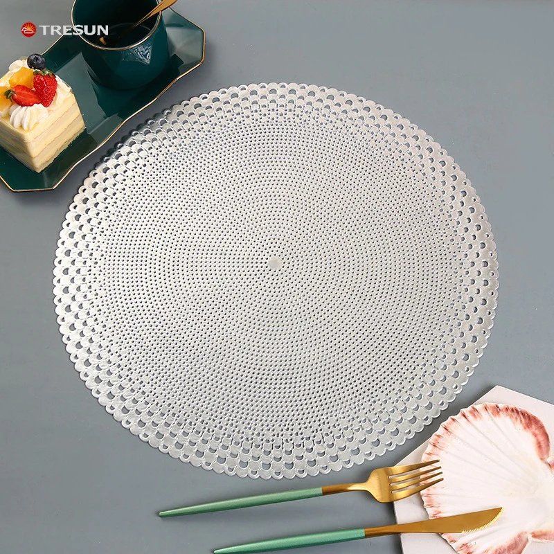21 reviews for Washable No-slip Round Gold Silver Wedding Accent Cutwork Metallic Decorative PVC Dinning Table Mats