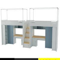 Cama alta cápsula espacial con escritorio: estructura de hierro y madera