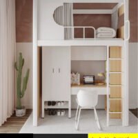 Elegante litera de hierro con escritorio para dormitorios y apartamentos