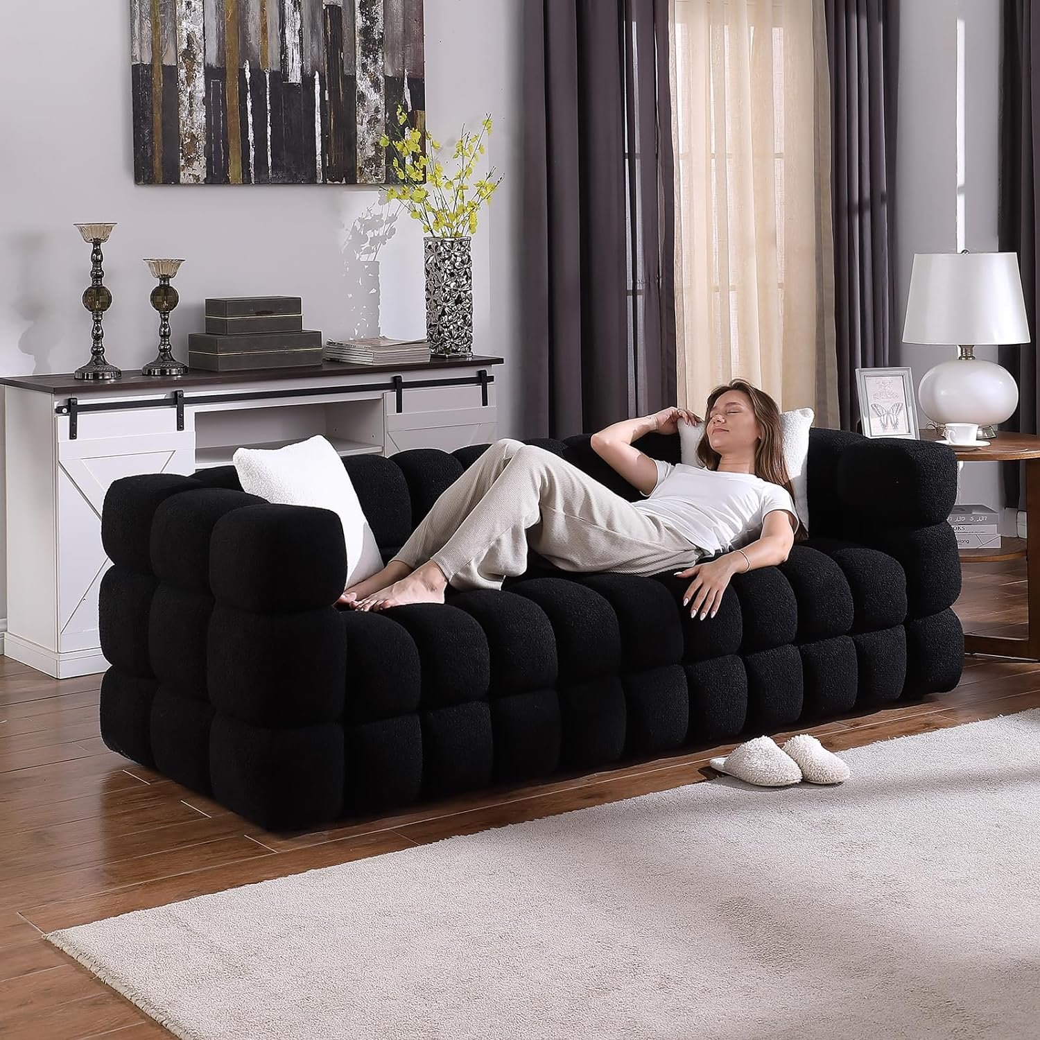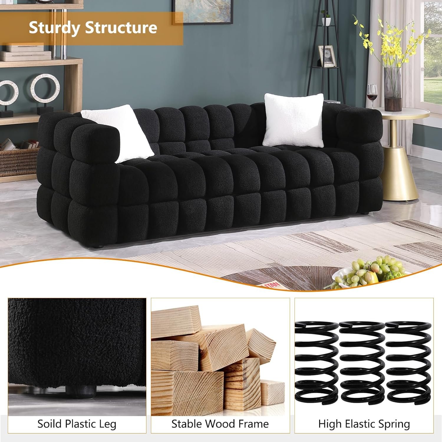 Cozy Boucle Fabric: Upholstered in skin-friendly boucle fabric, these couches promise not just aesthetic appeal but also a plush seating experience. The unique texture of boucle adds depth to the design while ensuring a warm and inviting ambiance 🌾