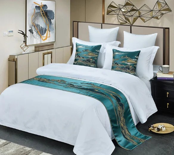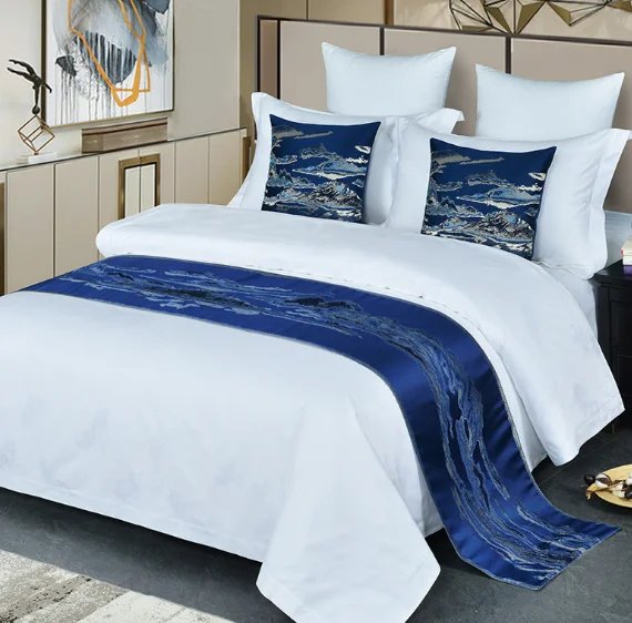 Hotel casa de huéspedes ropa de cama final de la cama toalla bandera de la mesa bandera del hotel funda de almohada cubierta de la cama de gama alta europea de estilo chino