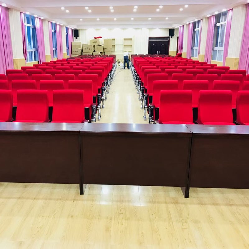 Sillas de auditorio personalizadas y mesas de madera maciza: diseño elegante