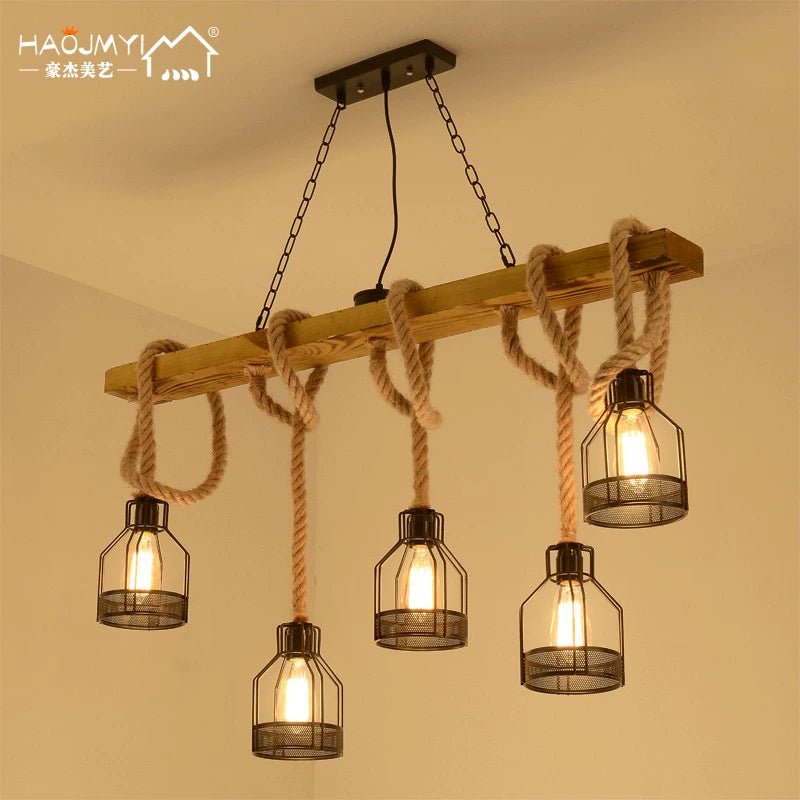 Enhance your space with the American Retro Industrial Style Hemp Rope Chandelier, a distinctive lighting fixture that combines rugged charm with creative design. Ideal for clothing stores, bars, internet cafes, and bar counters, this chandelier brings a touch of industrial elegance to any setting.