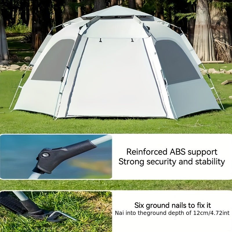 🌟Feature: Hexagonal Tent Shape Hexagons are the new trend, trust me. This tent’s hexagonal shape not only looks rad, but it also gives you extra headroom and space to stretch out. We’ve got you covered, fam! 🙌🏻😎