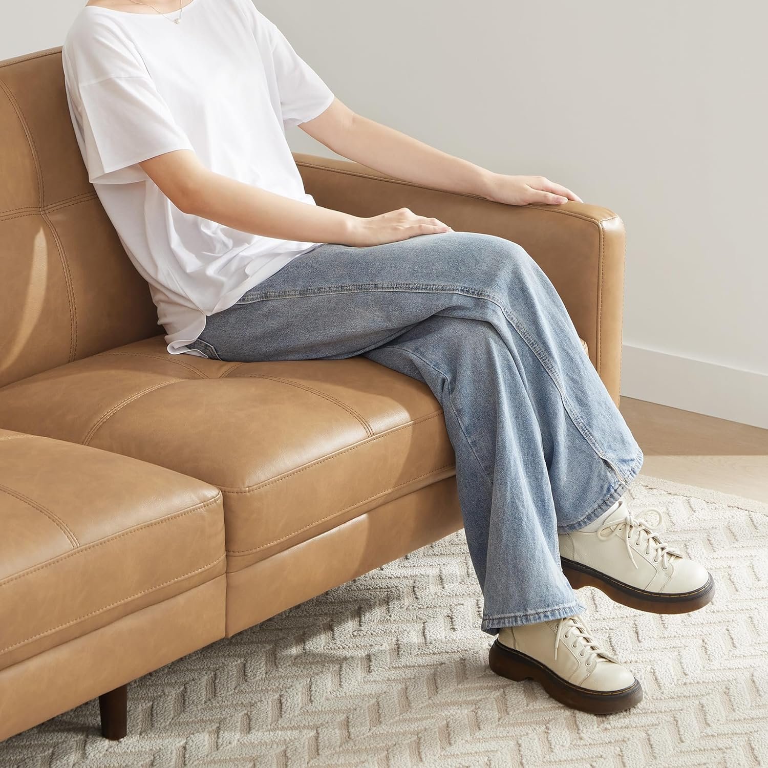 20 valoraciones en CHITA Mid-Century Faux Leather Sofa in Cognac Brown