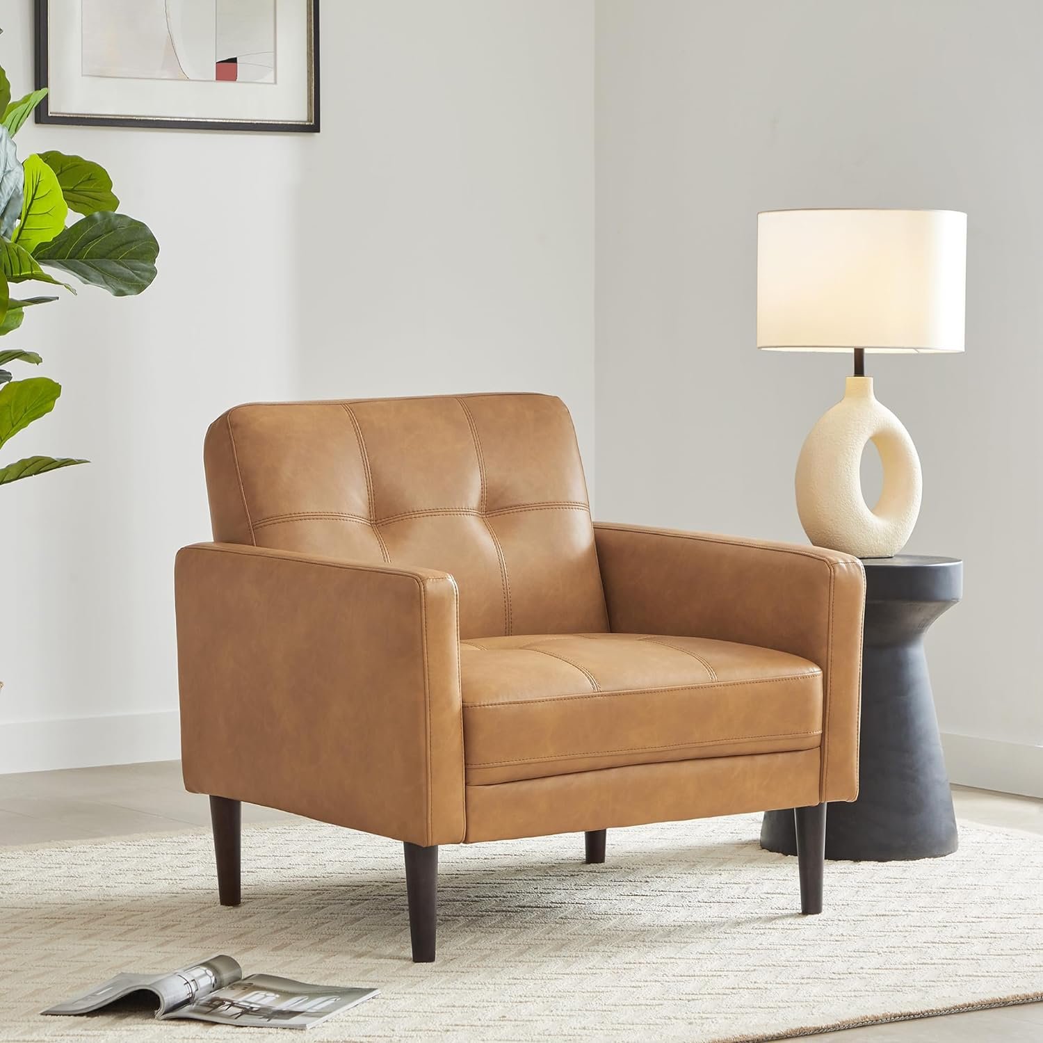 CHITA Sillón de piel sintética de mediados de siglo, Marrón coñac A partir de: Rango de precios: desde $307.15 hasta $411.59
