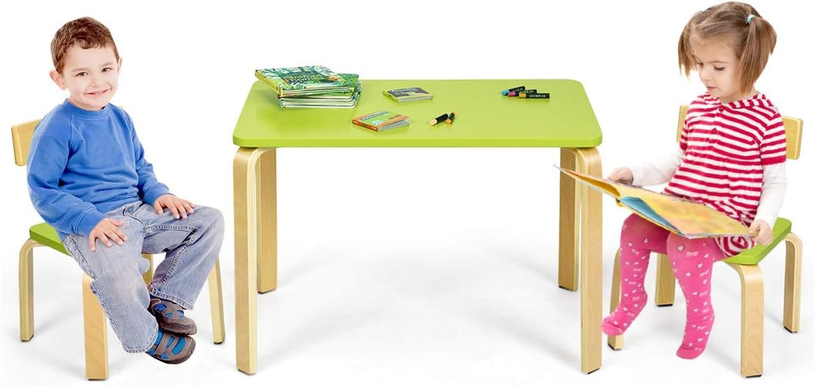 - Fabricado con madera curvada de alta calidad y recubierto con pintura ecológica, este juego de mesa y sillas para niños es atóxico e inodoro, lo que garantiza la seguridad de los niños y ofrece una larga vida útil. Certificado por ASTM para mayor tranquilidad.