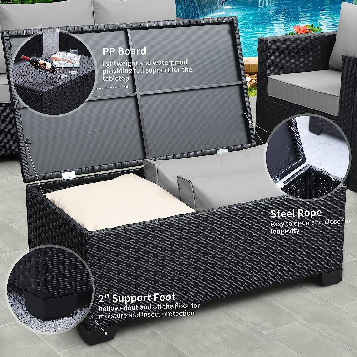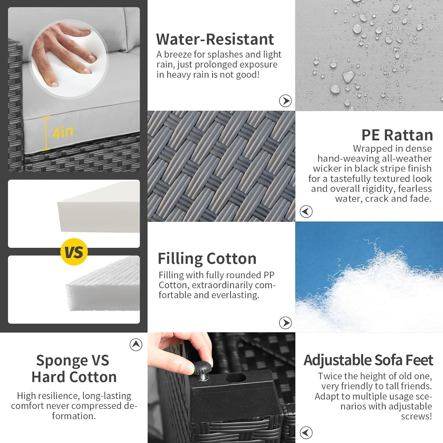 🪑 Opciones versátiles¡Eleve su oasis al aire libre fácilmente! Elija entre asientos convencionales, módulos modulares para exteriores y acogedoras chimeneas para reuniones al aire libre. Disfrute de un estilo elegante y fresco sin sacrificar la comodidad ni la resistencia.