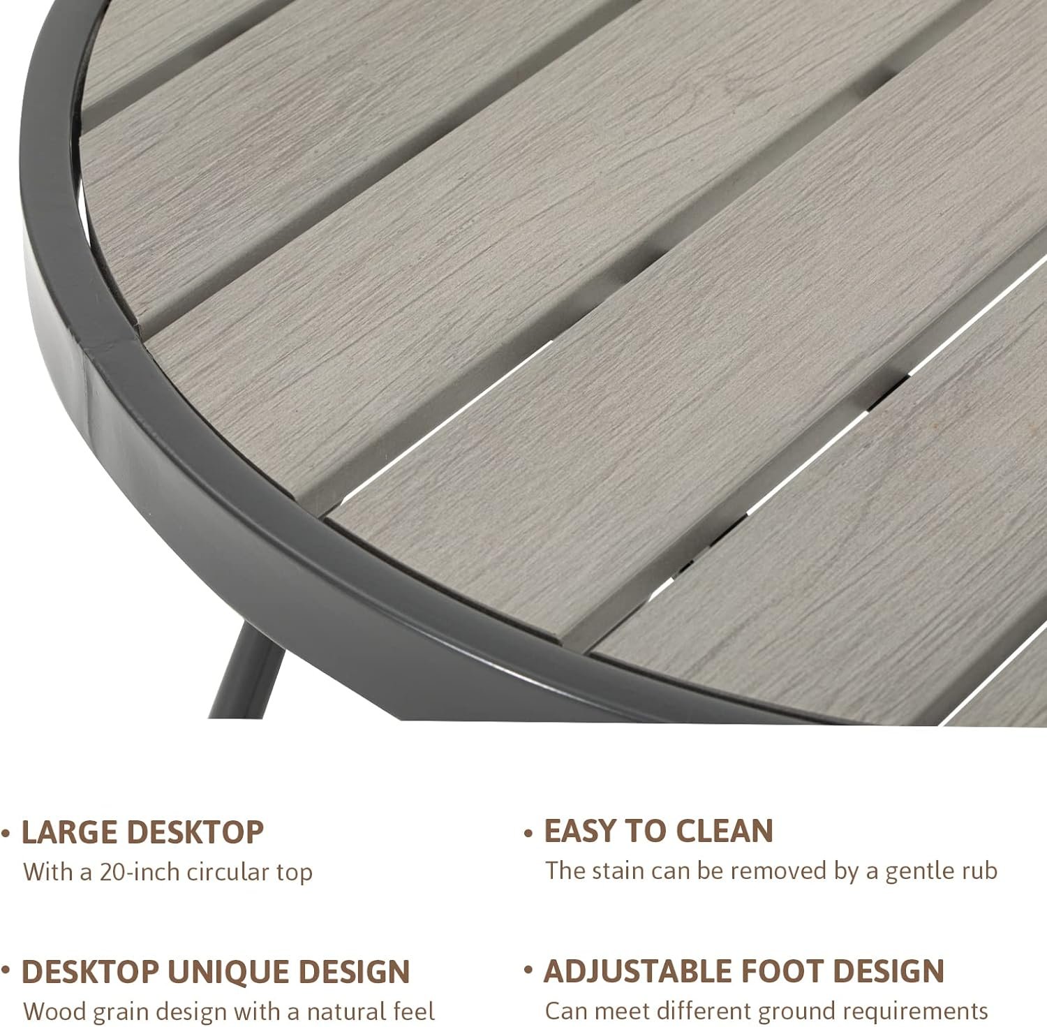 - Coffee table: 19.7″ diameter, 44-pound weight capacity
