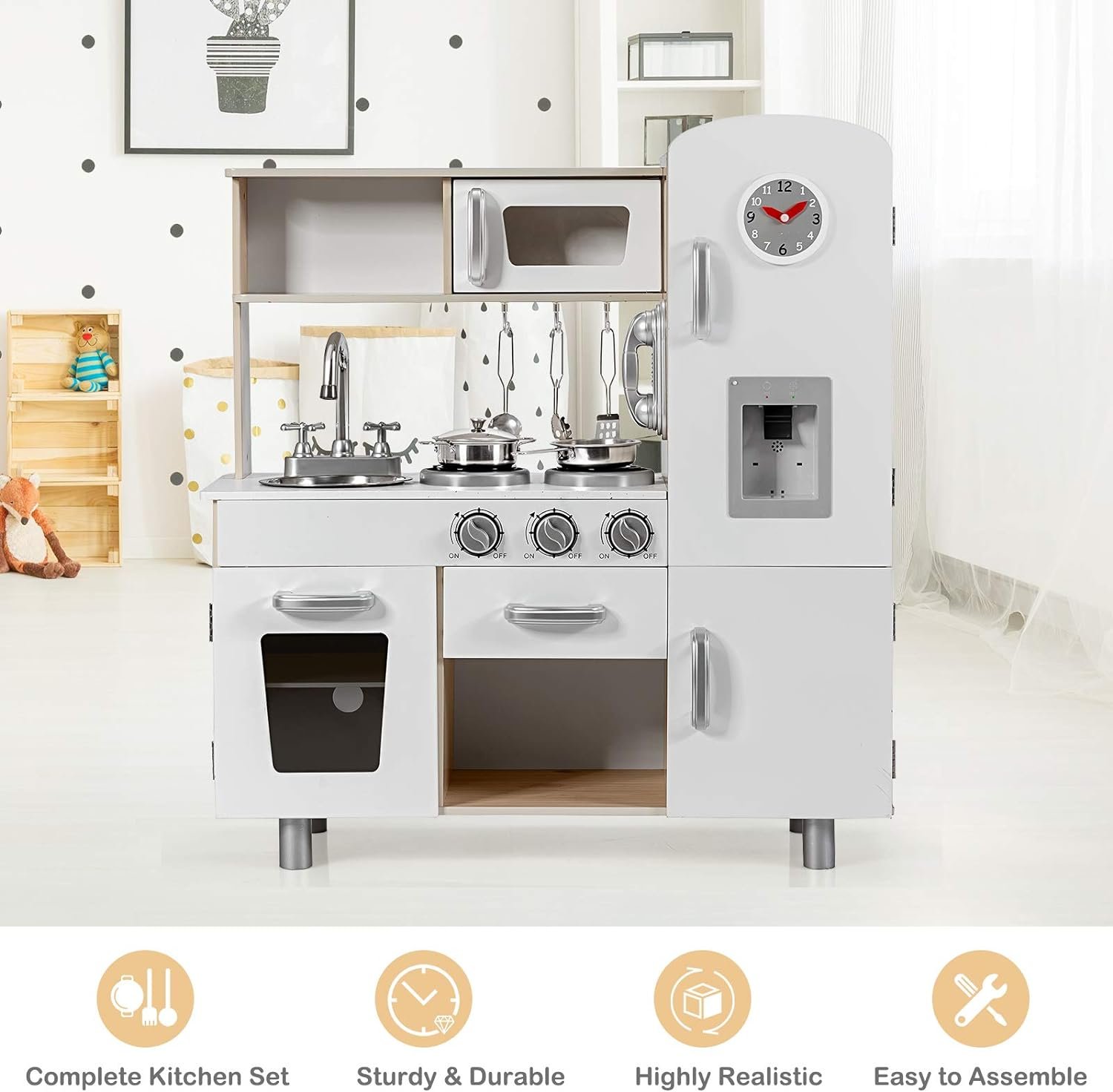 I’m satisfied with this kitchen playset. It’s colorful and keeps my kids entertained for hours.