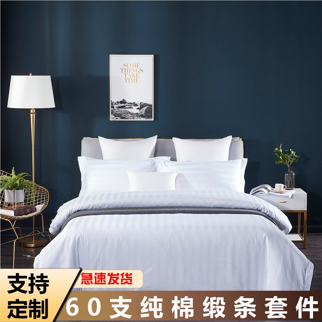 22 valoraciones en Cotton bedding hotel bed and breakfast four-piece set single piece pure cotton simple satin stripe bed sheet quilt cover pillowcase