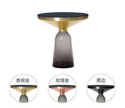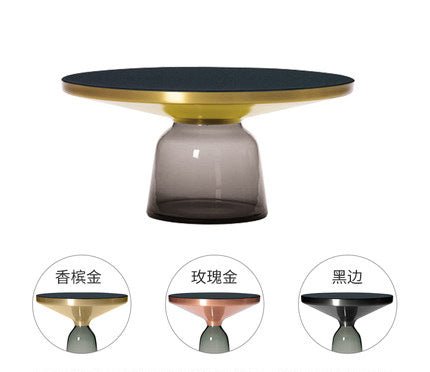 Transform your small apartment with our extremely creative Nordic tempered glass bell coffee table. Combining modern simplicity with high-end design, this round side table features a striking bell shape and a sophisticated color finish, making it a standout piece in any contemporary setting.