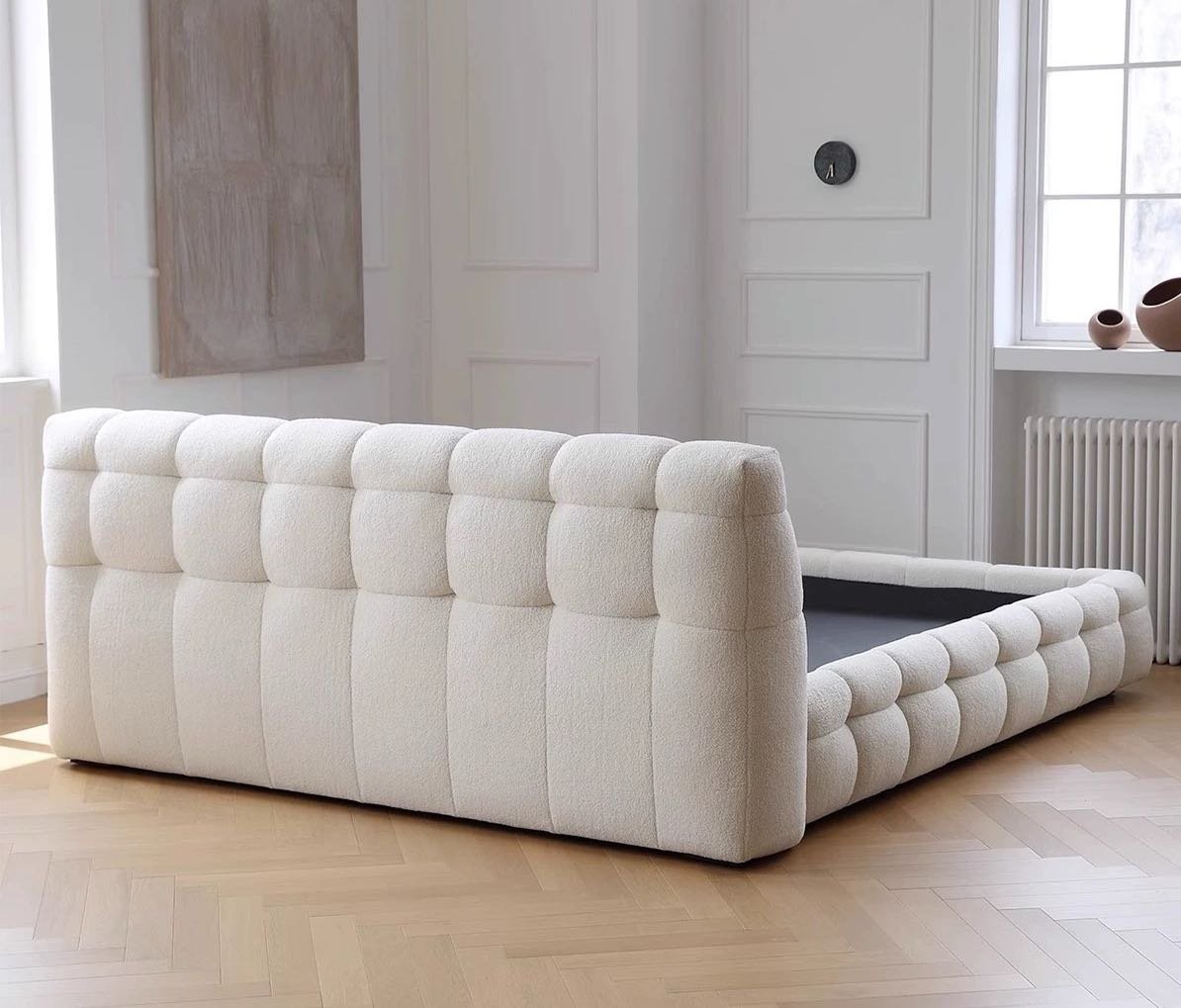 The Lennon Double Bed is more than just a place to sleep; it’s a statement of refined taste and luxury. Its floor-standing design provides unmatched stability, while the elegant cream color seamlessly blends with any decor style, making it a versatile choice for various interior themes.