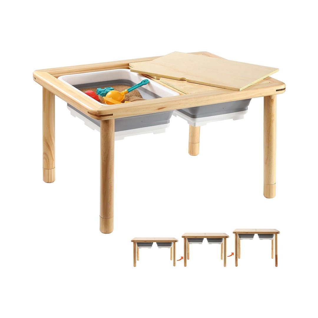 Everything you need is included: 1 table, 2 bins, 2 covers, and 3 sets of wooden legs. This Montessori sand play table fosters hands-on skills development and makes an excellent gift for occasions like Christmas and birthdays.