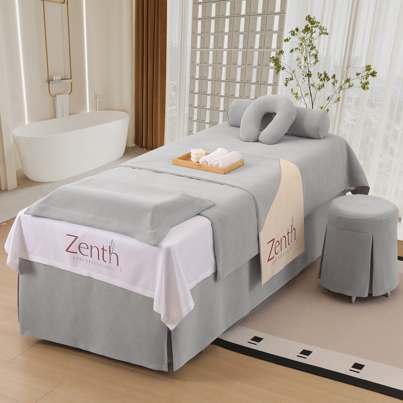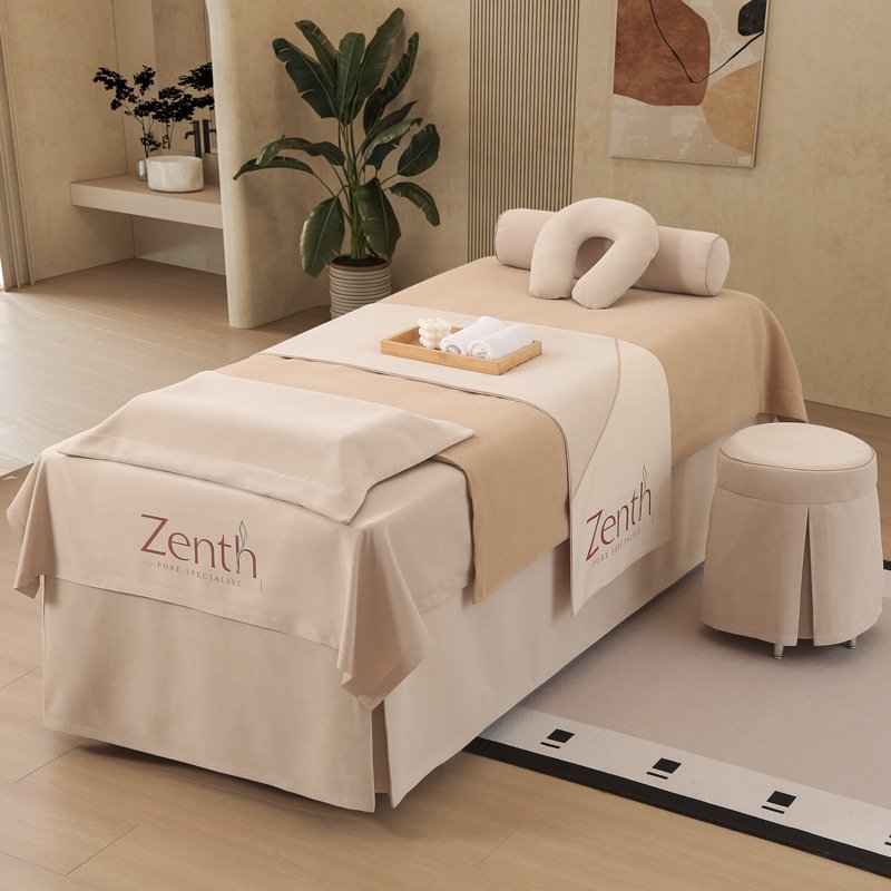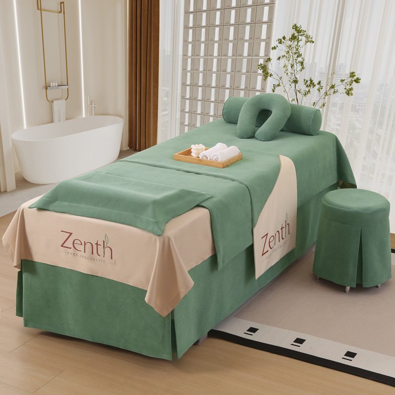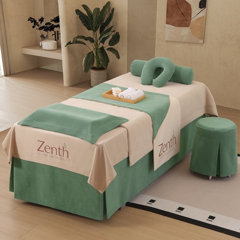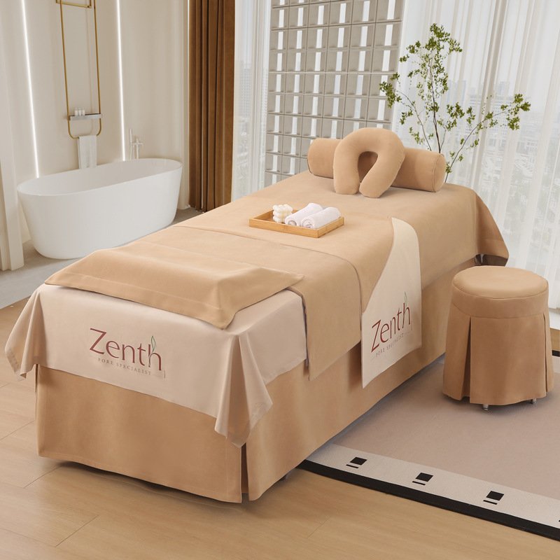 18 valoraciones en High-end beauty bed cover four-piece set light luxury high-end beauty salon head massage ear and eyelash beautification bed sheet custom made