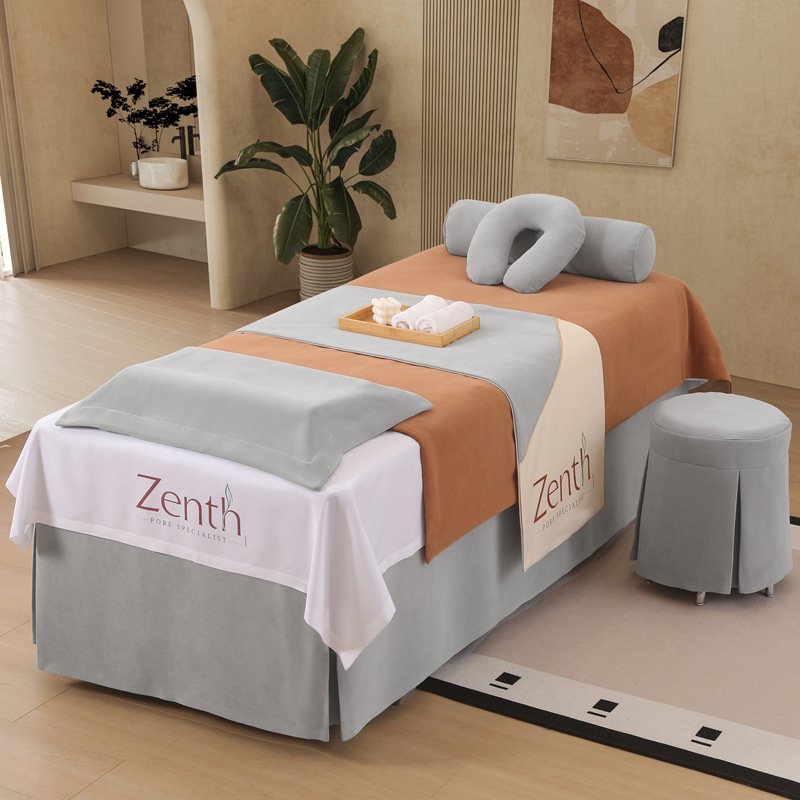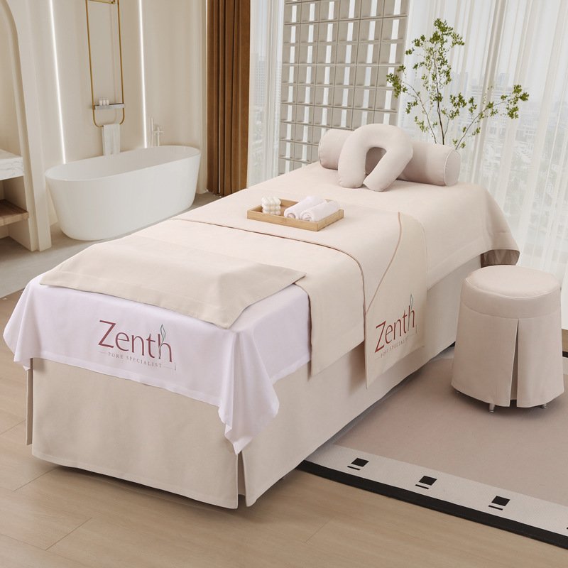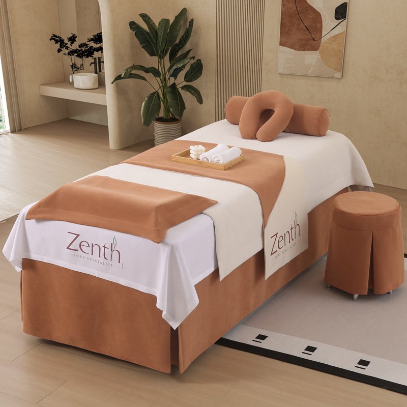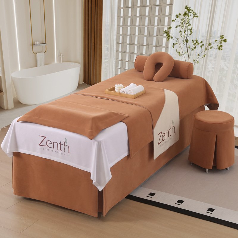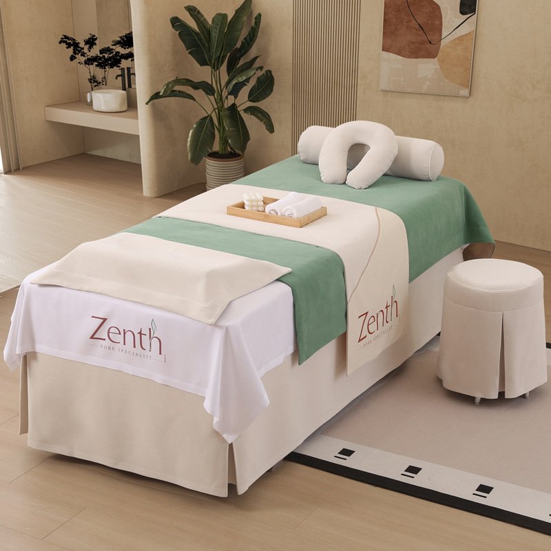 18 valoraciones en High-end beauty bed cover four-piece set light luxury high-end beauty salon head massage ear and eyelash beautification bed sheet custom made