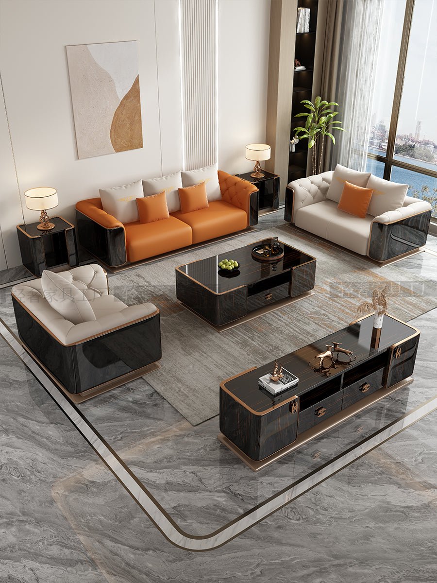 - ordenar por color:Single sofa (first layer cowhide imported from Italy), double sofa (first layer cowhide imported from Italy), three-person sofa (first layer cowhide imported from Italy), four-person sofa (first layer cowhide imported from Italy), coffee table, TV cabinet, side table, leisure chair (first layer cowhide imported from Italy), dining sideboard, chest of drawers, bed 1800*2000 (first layer cowhide imported from Italy), dining table (one table and six chairs), single sofa + double sofa + three-person sofa (first layer cowhide imported from Italy), single sofa + double sofa + four-person sofa (first layer cowhide imported from Italy), three-person sofa + double sofa + three-person sofa + coffee table + TV cabinet deposit