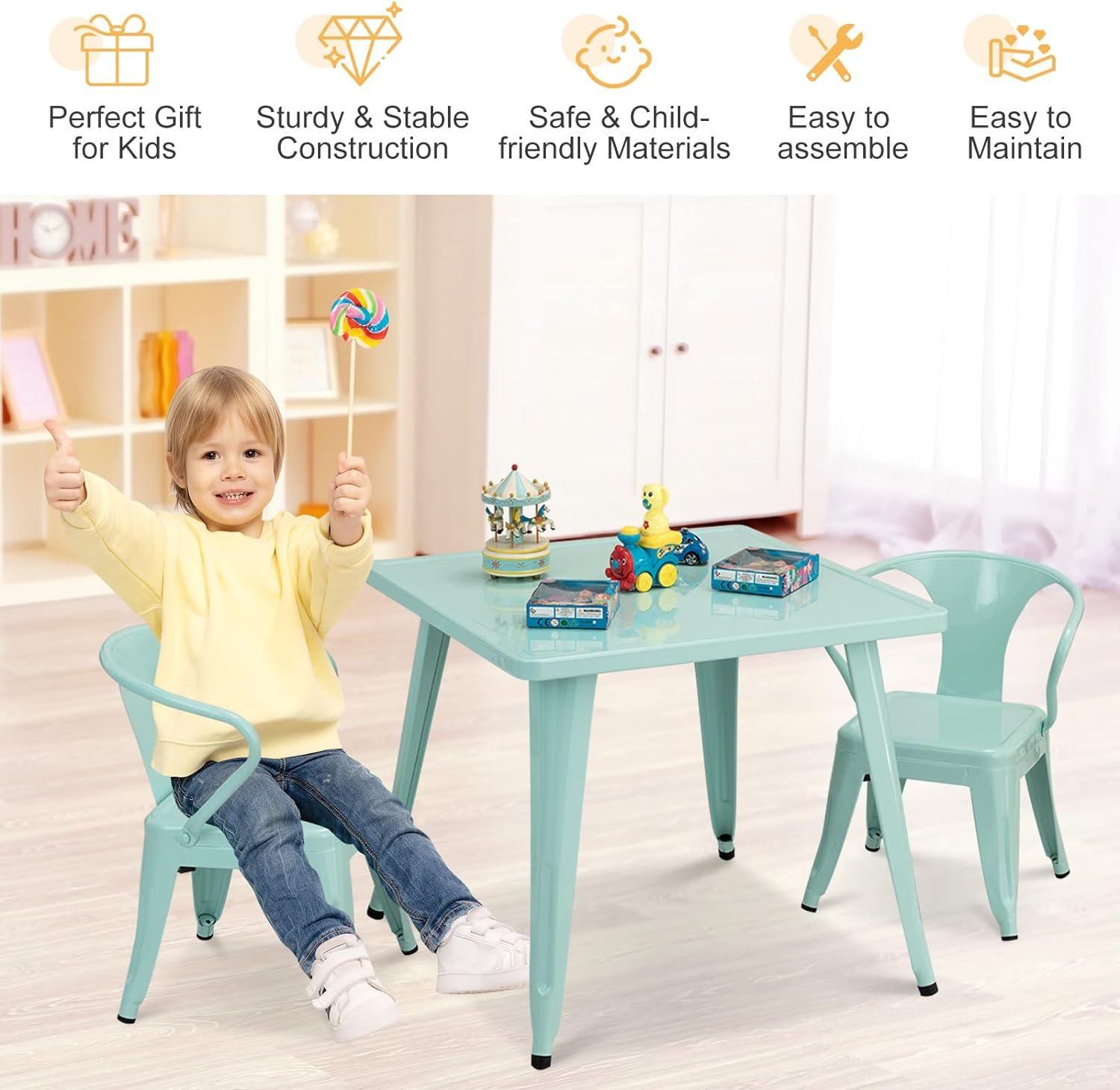 Juego de mesa y sillas infantiles Costzon, verde menta, apilable