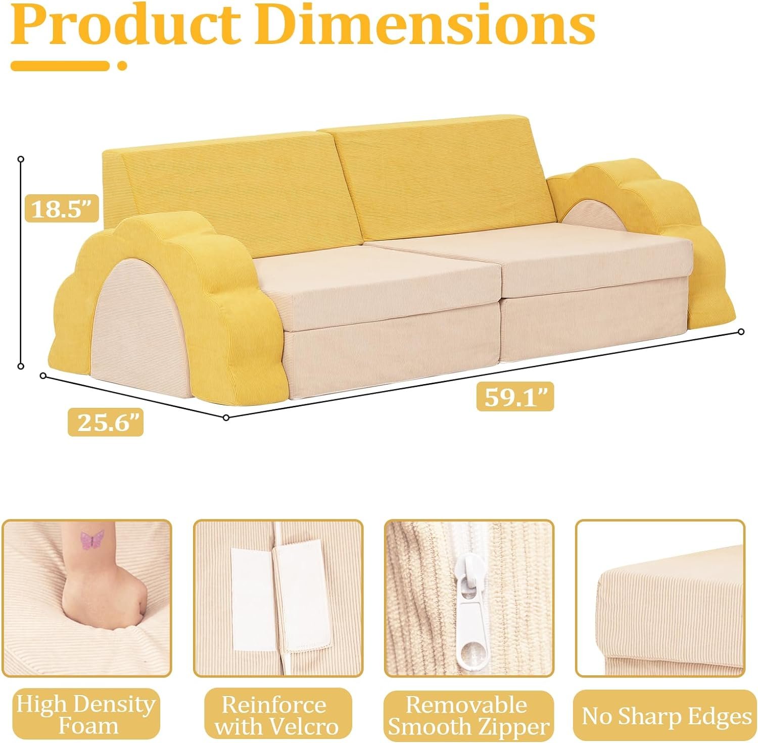 - Convertible functions include sofa, playhouse, tunnel, castle, bed, tent, and more!