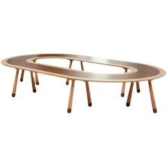 - ordenar por color:Semi-circular table (170*85*50cm), oval table (290*170*50cm), large S table (290*205*50cm), wave table (590*tabletop 50*50)
