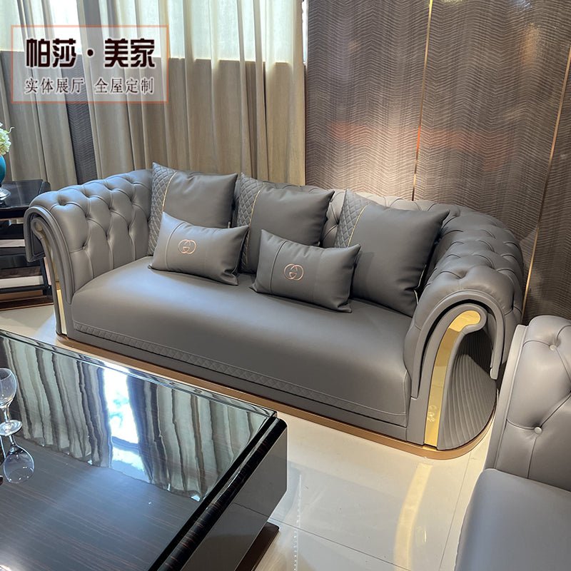 Transform your living space with this elegant and comfortable Modern Retro Leather Sofa Set, perfect for any stylish interior. 🌟🛋️