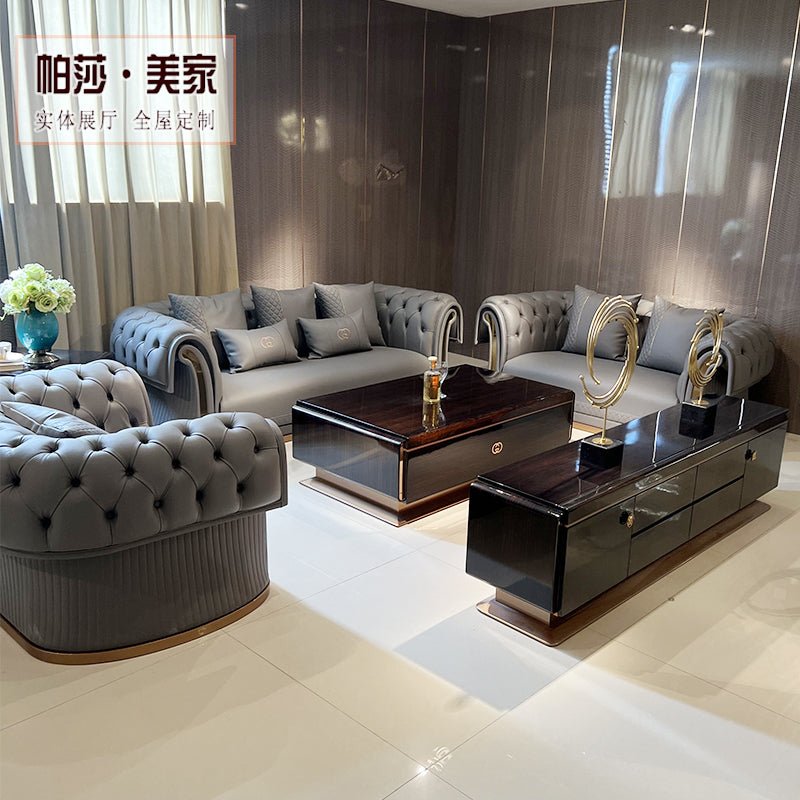 - ordenar por color:Single sofa, double sofa, three-seater sofa, coffee table, side table, Suzhou Wanping factory thousand-square-meter showroom welcomes you to visit