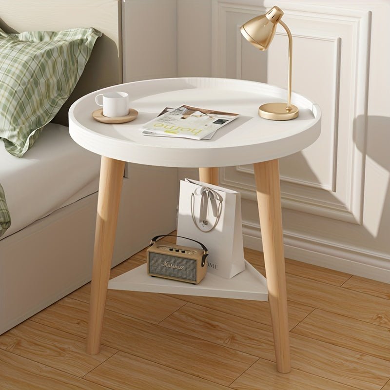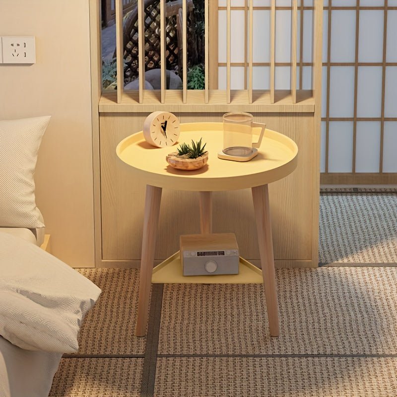Mesa de centro redonda nórdica de dos niveles con patas de madera