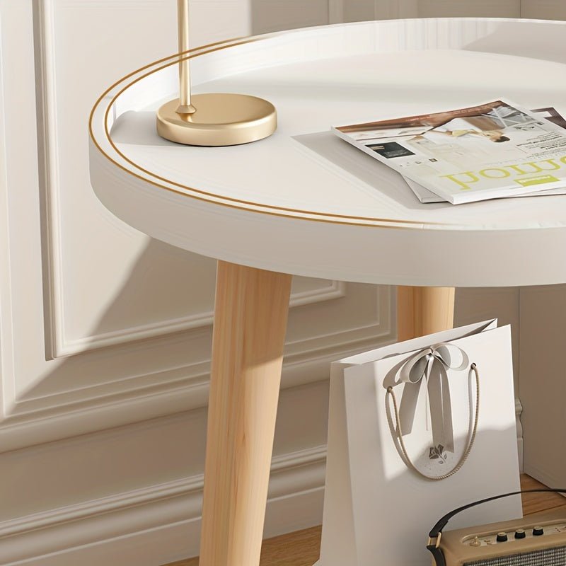 💖 Adorable y funcional: Con su diseño elegante y minimalista, esta mesa complementa cualquier estilo de decoración. Cuenta con almohadillas de goma antideslizantes en la parte inferior para proteger el suelo y reducir el ruido, además de un diseño de protección en los bordes para evitar que los objetos se caigan.