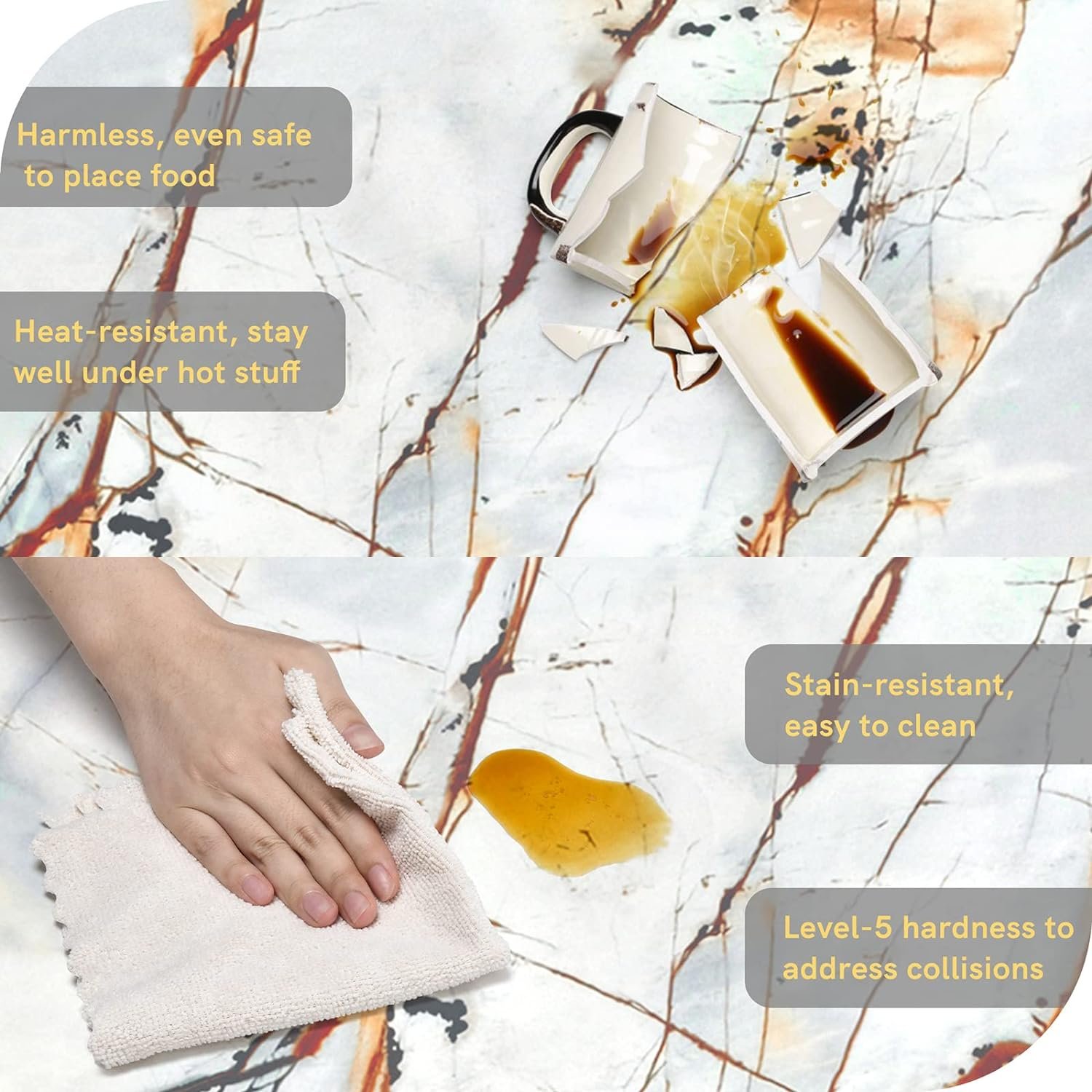 - 🪨 Tablero de mesa de piedra sinterizada: Tablero entero elaborado a partir de piedra sinterizada, cocida a 1200° para lograr una apariencia similar al mármol con mayor resistencia, calor, manchas y rayones.