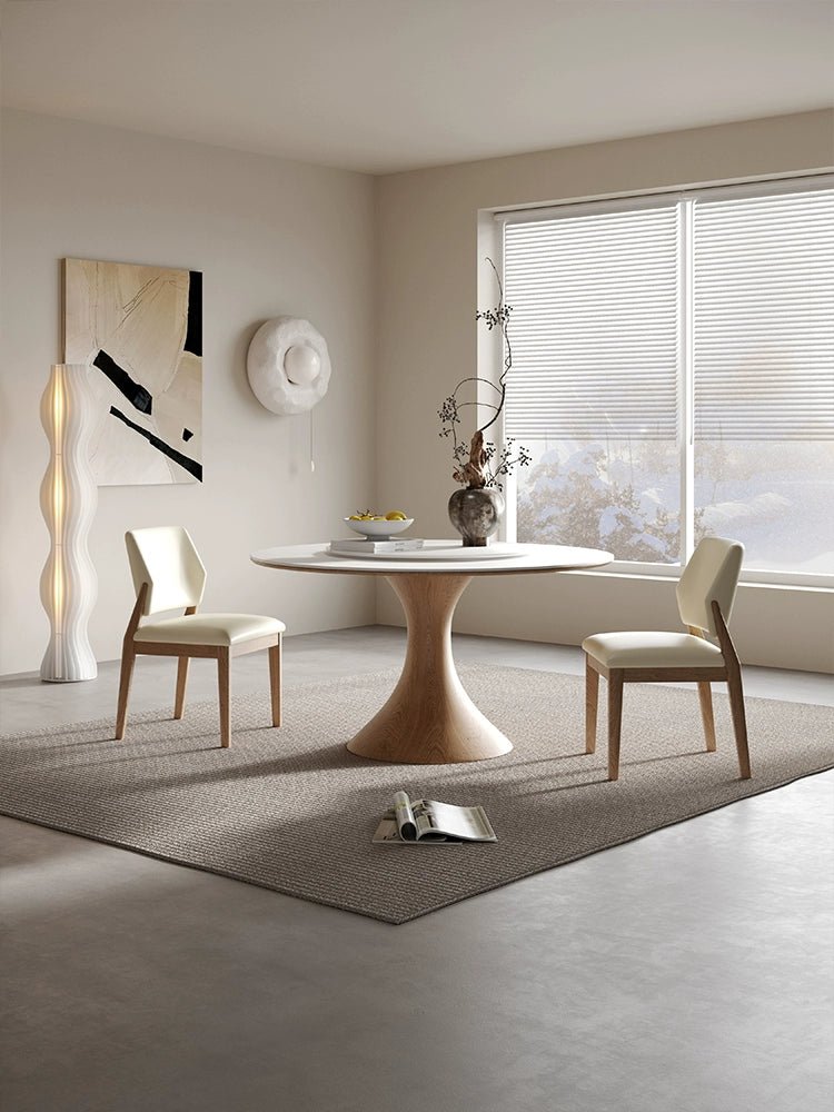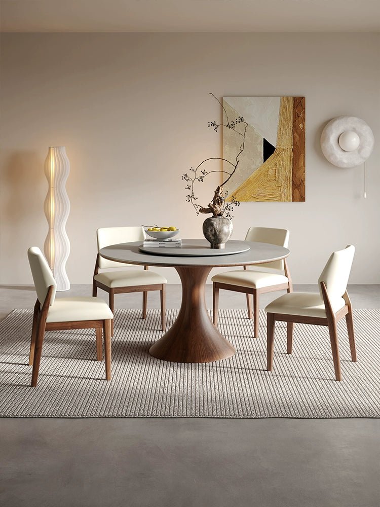Mesa de comedor redonda nórdica de madera maciza con plato giratorio