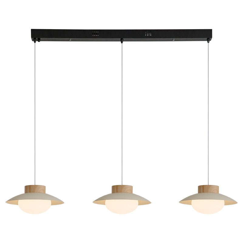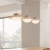 Lámpara colgante de isla de 3 luces, color blanco, con acabado en madera y hierro