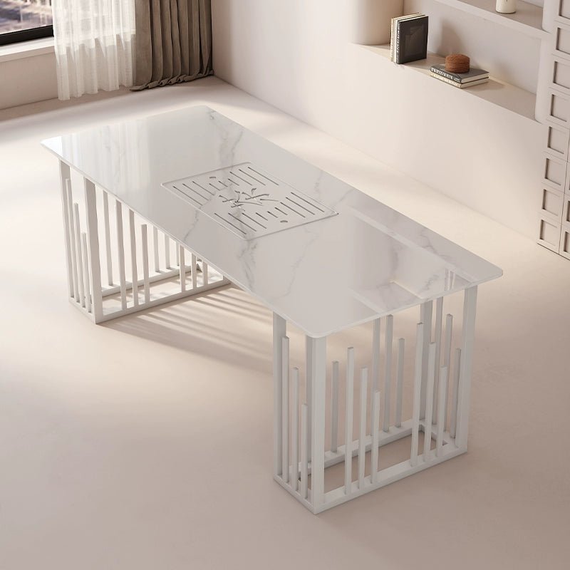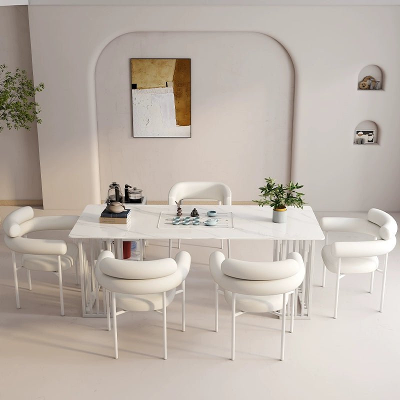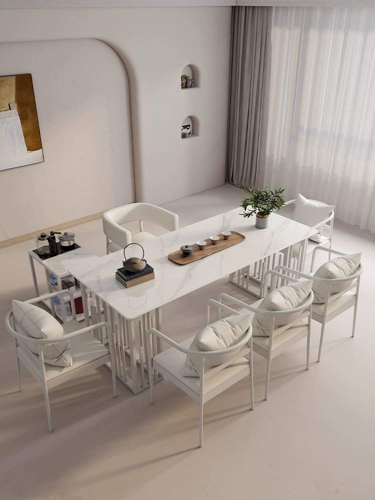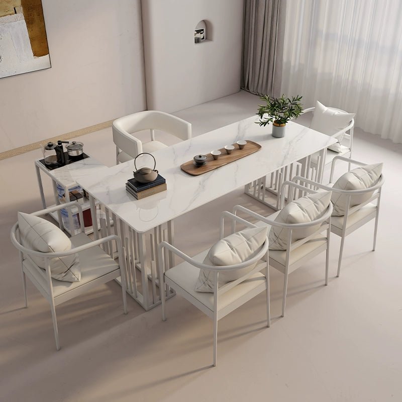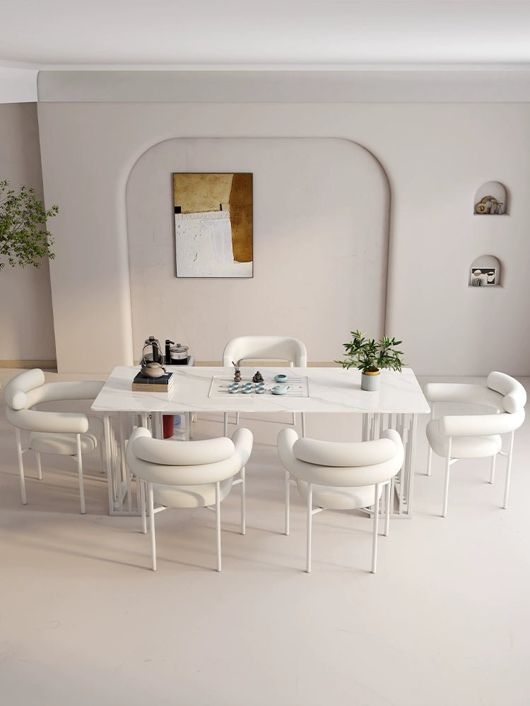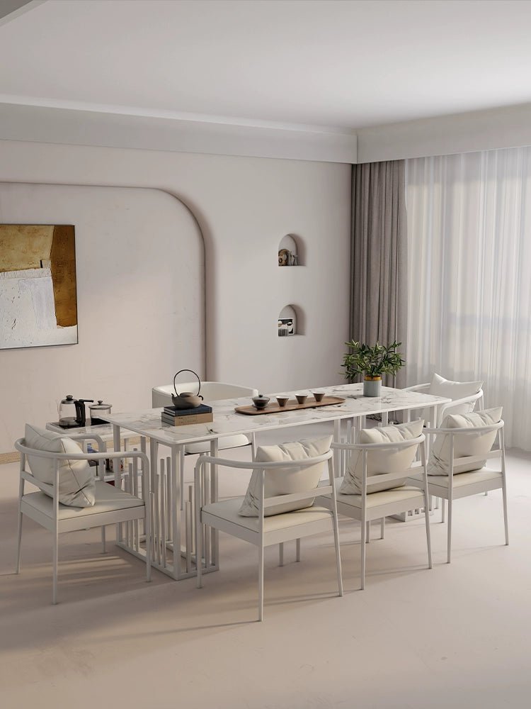 Elegante juego de comedor de piedra sinterizada: elegante y duradero.