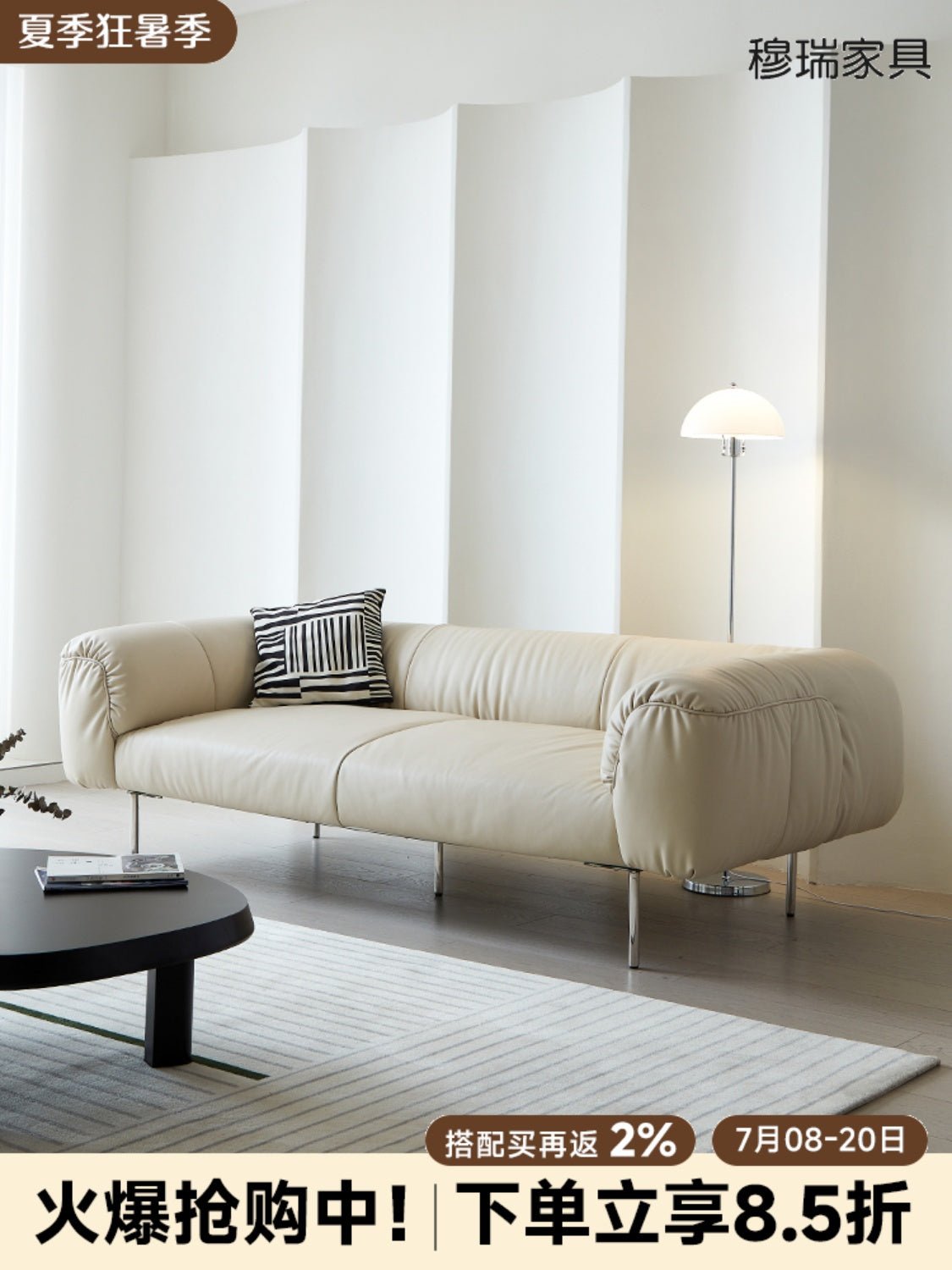 Sofá italiano de lujo de cuero mate claro – Diseño personalizado de Smile