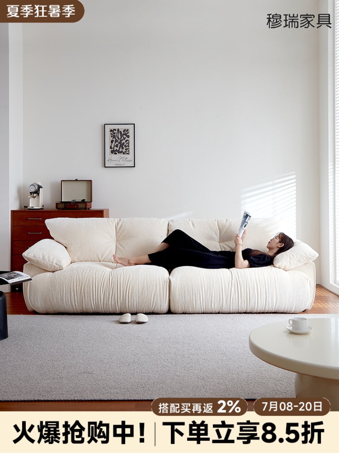 Murray Furniture Retro Wabi-Sabi Cream Wool Sofa
