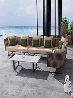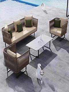 Outdoor rattan sofa chair coffee table parasol waterproof sunscreen single chair leisure Nordic style outdoor courtyard homestay BEJUSTSIMPLE