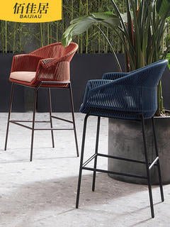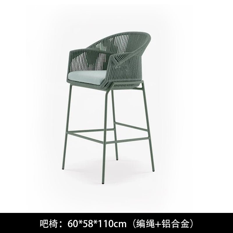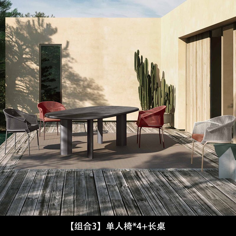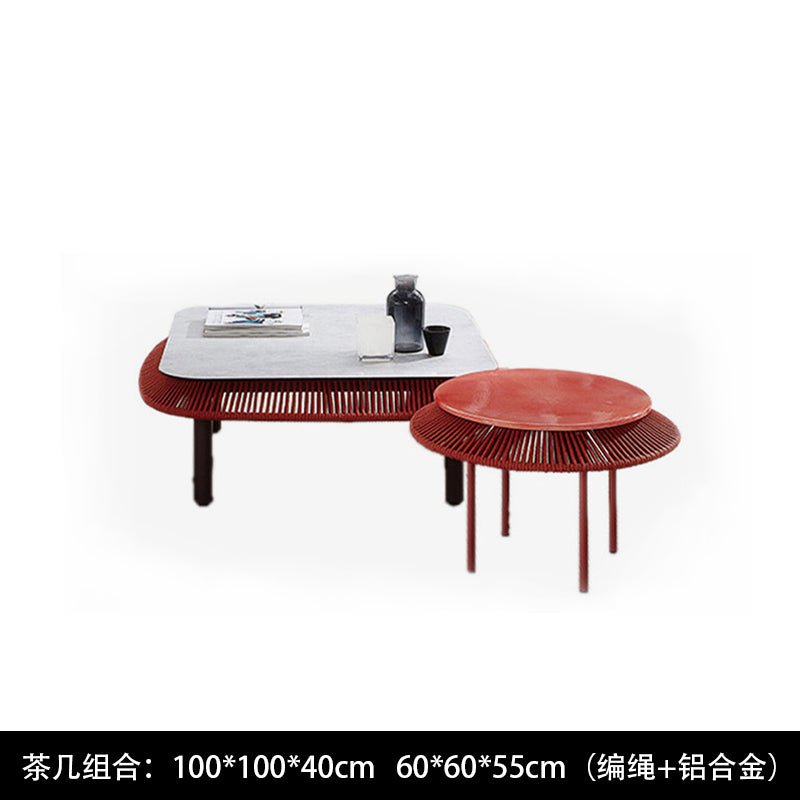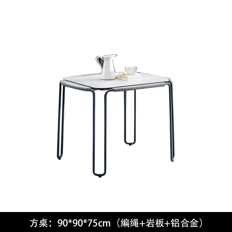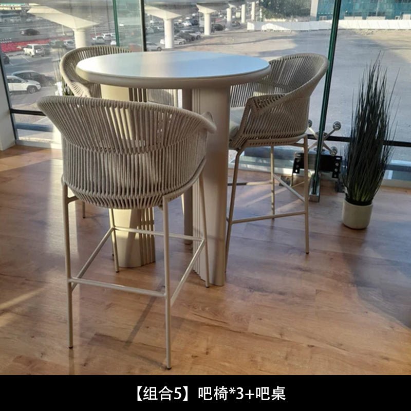 Conjunto de silla y mesa de ratán tejido con cuerda nórdica para exteriores