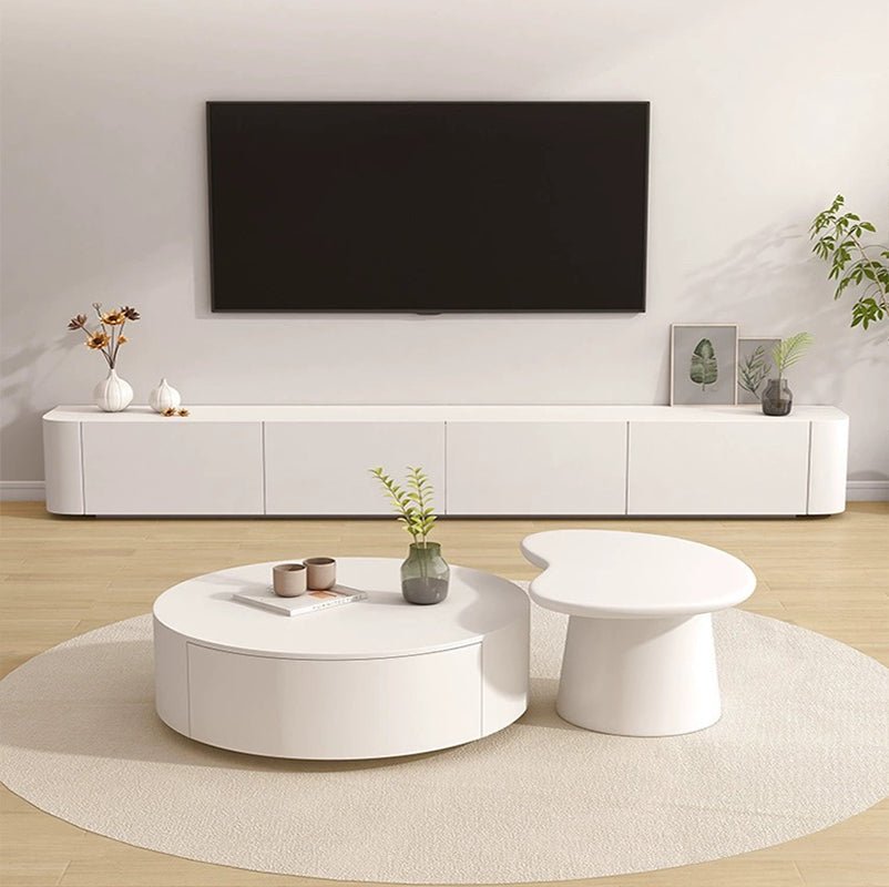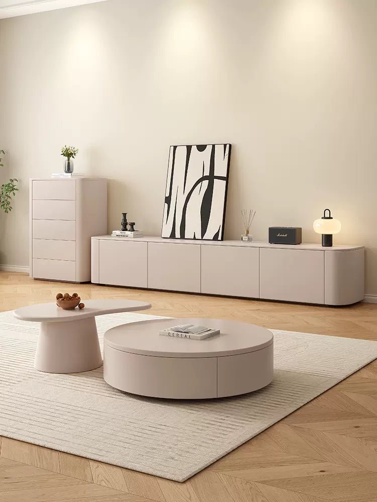 Mueble de TV y mesa de centro en color crema nórdico: elegancia moderna