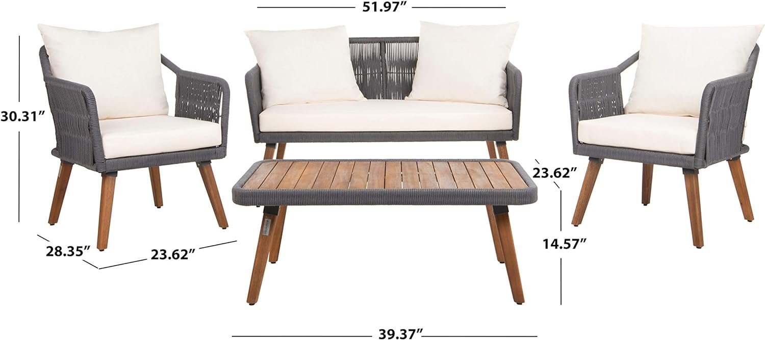 Safavieh Raldin 4-Pc Outdoor Living Set, Gris oscuro/beige
