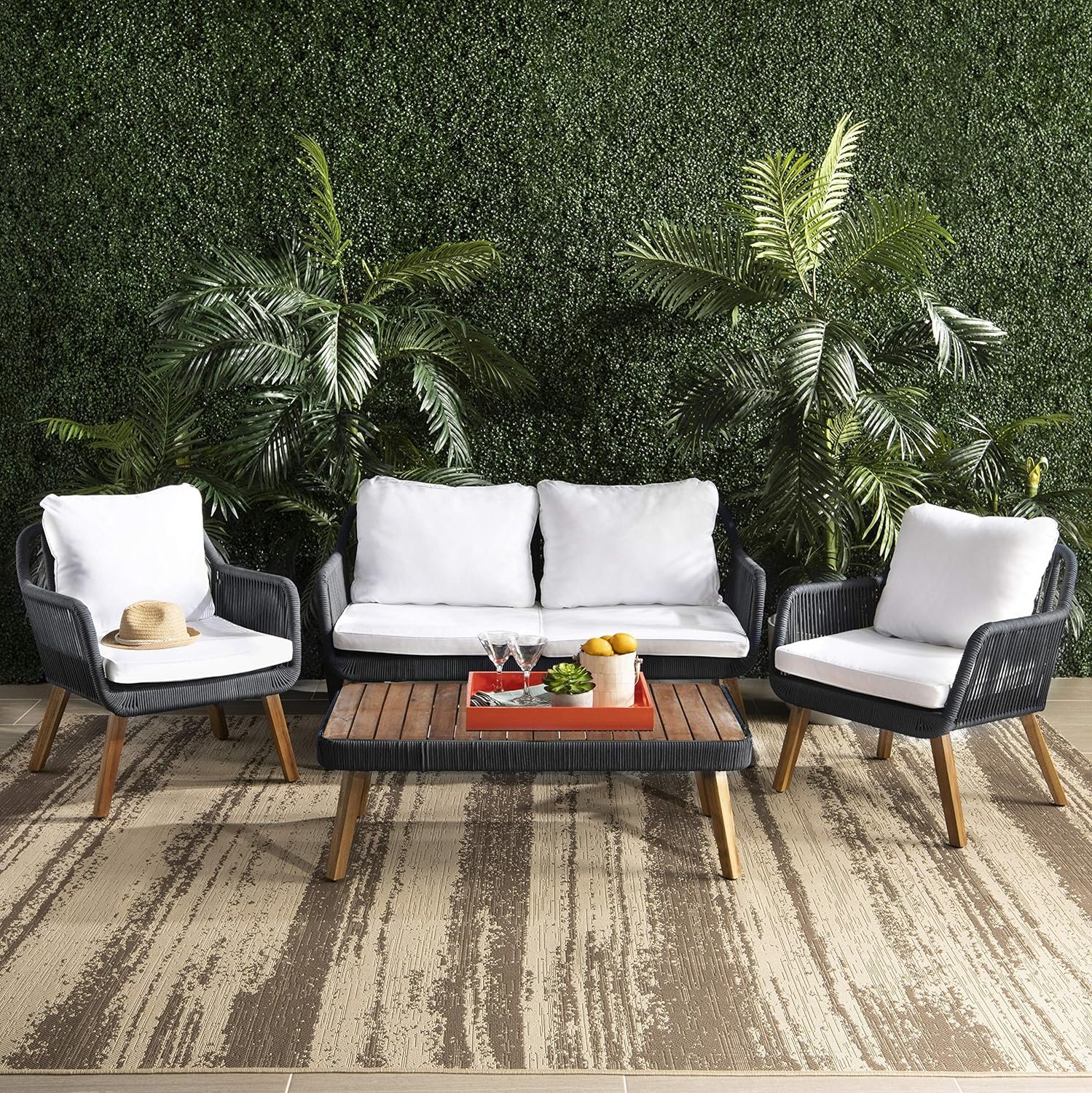 18 valoraciones en Safavieh Raldin 4-Pc Outdoor Living Set, Dark Grey/Beige