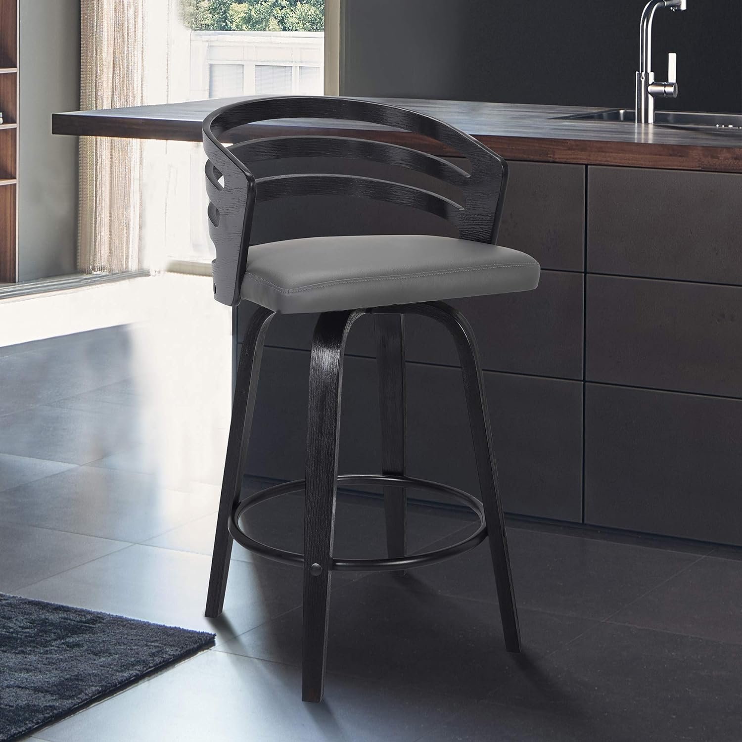Armen Living Taburete de bar giratorio Jayden gris 26″ de mediados de siglo
