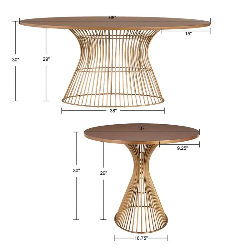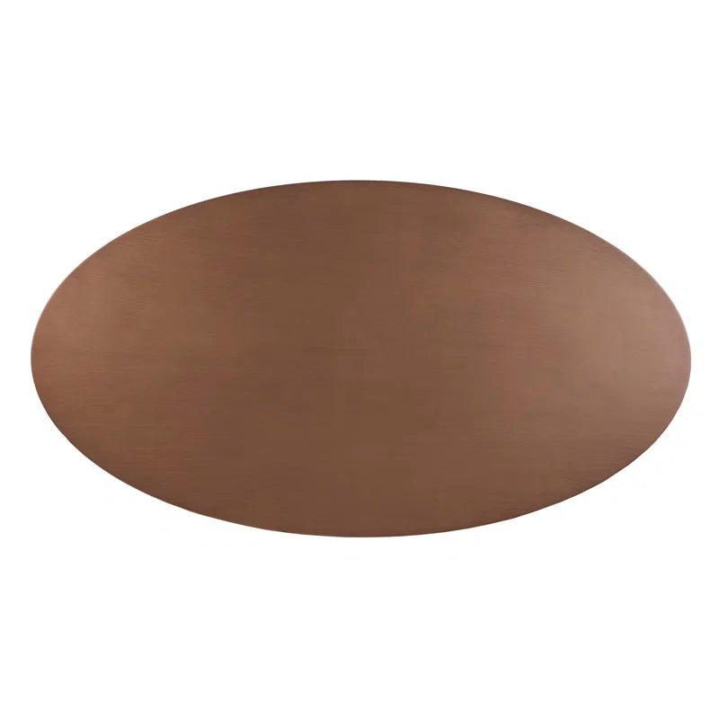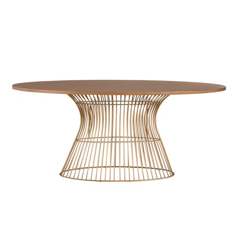 Bold, breezy style meets a luxe look in this 68” dining table. Crafted from metal and engineered wood, it features a clean-lined oval table balanced on a flared pedestal base made of slim, curved metal beams. A metallic finish adds a glam look that’s just right for sophisticated dining rooms and breakfast nooks. We love that it’s designed to seat up to six people, so it’s just right for family dinners or an intimate dinner with a few friends. Pair it with a set of coordinating dining chairs to complete the effect.