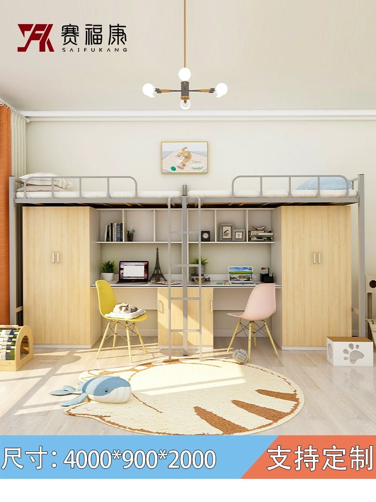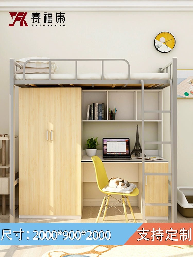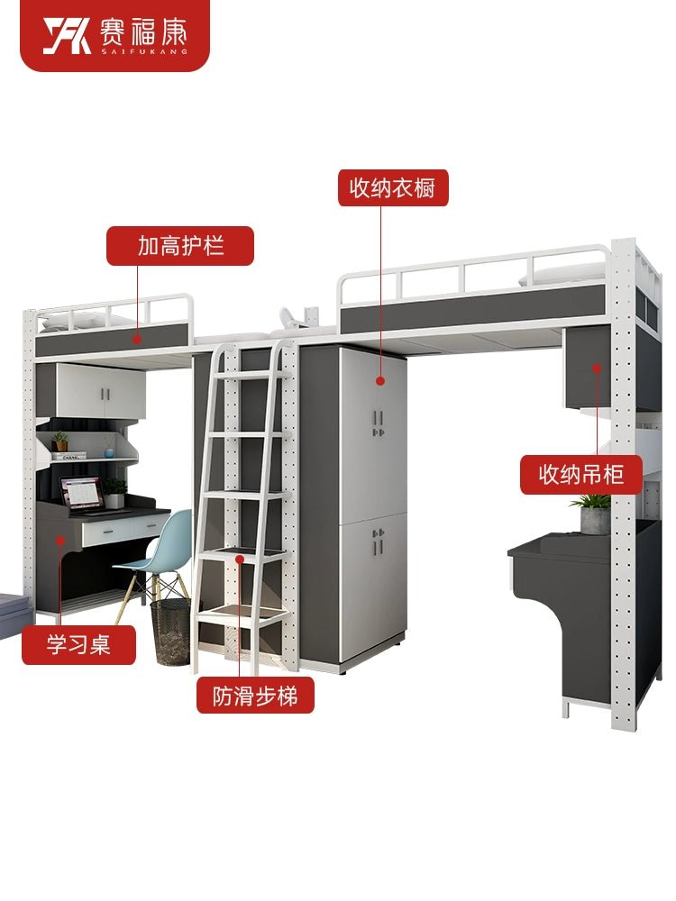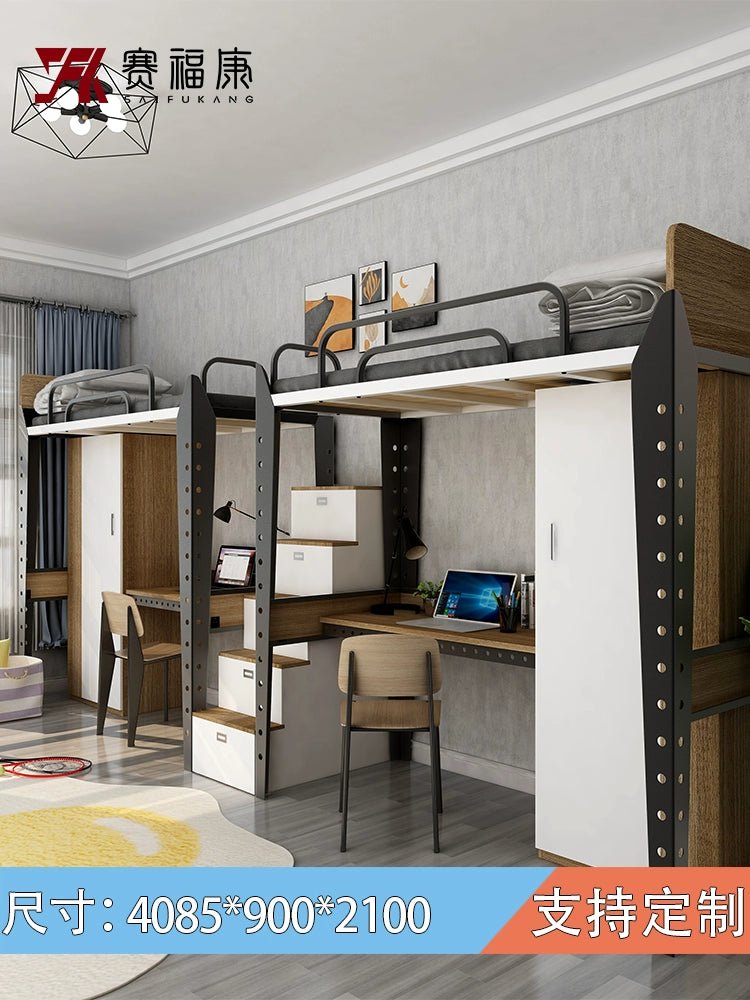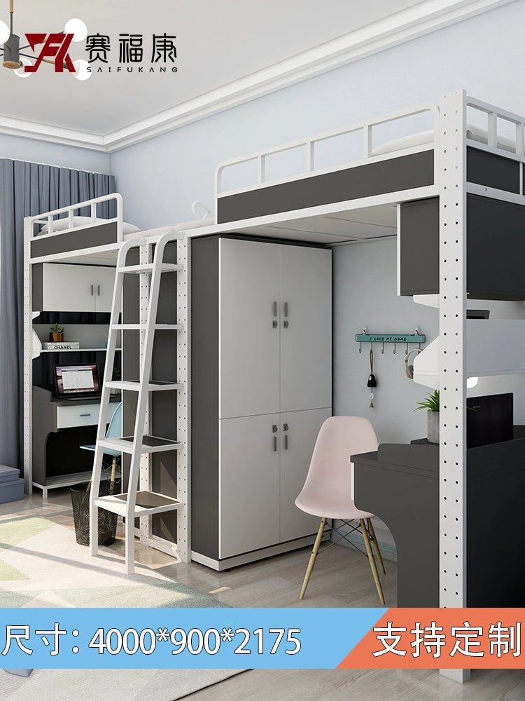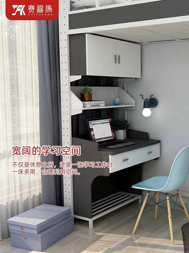 Cama alta multifuncional y escritorio para residencias universitarias